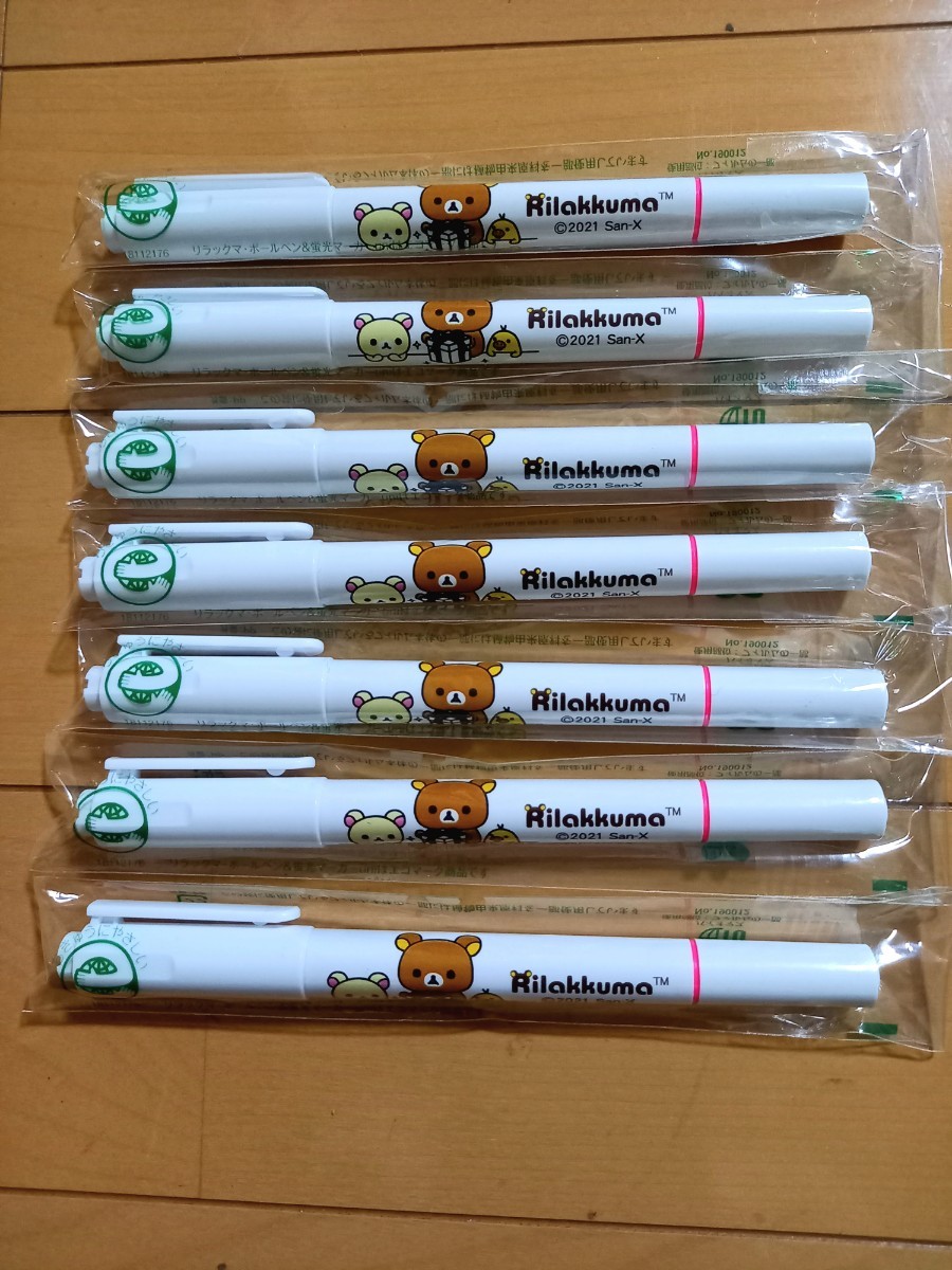 リラックマ オリジナル ピンク蛍光ペン付ボールペン×7本セットです。