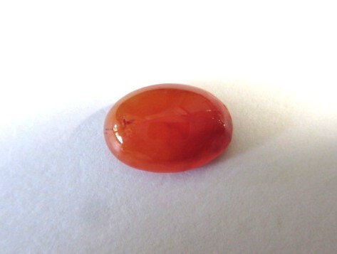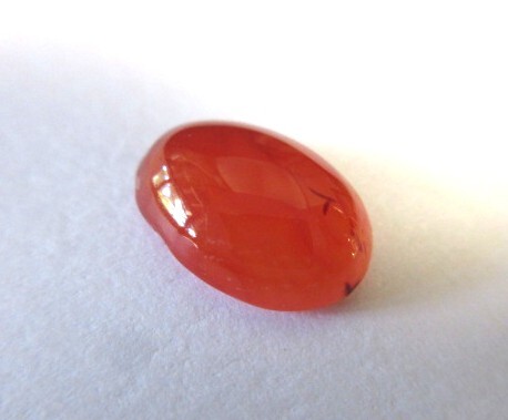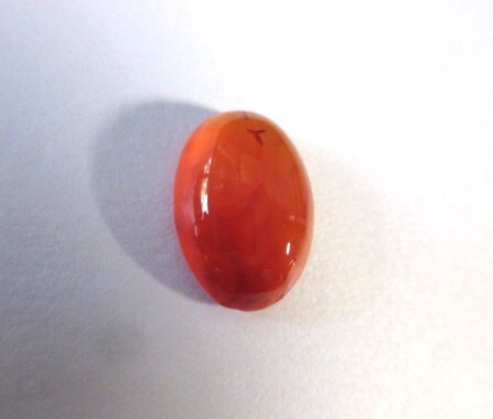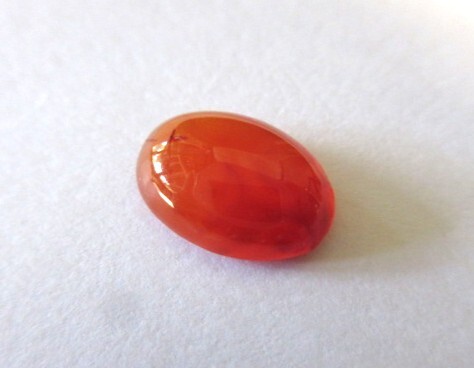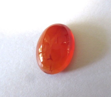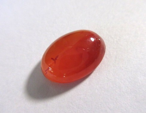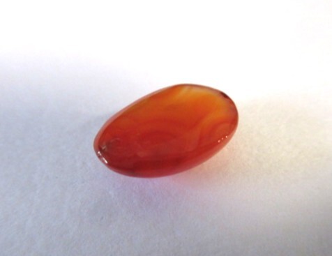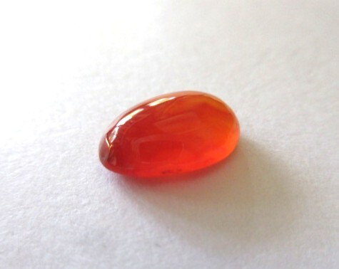 明るいオレンジ色のカーネリアン・カボーションです。裏側から見ると結晶の模様がわかります。