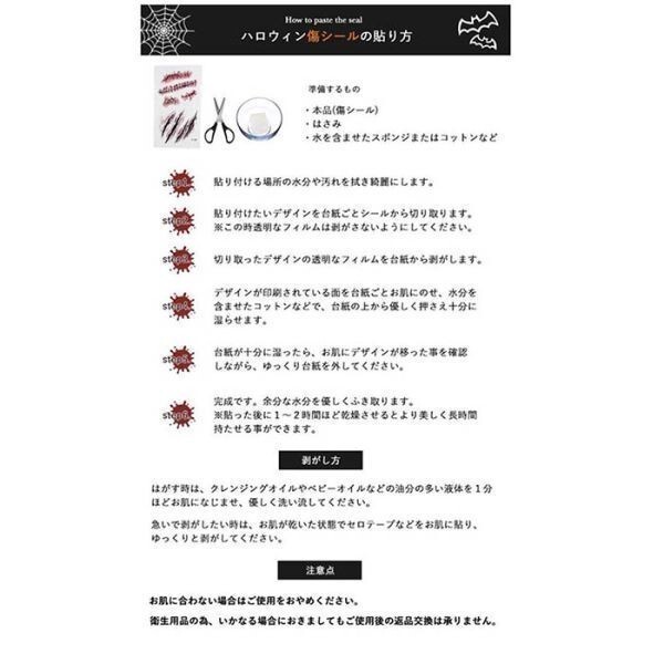 傷シール タトゥー ハロウィン コスプレグッズ 仮装 レディース ブラック NHT014