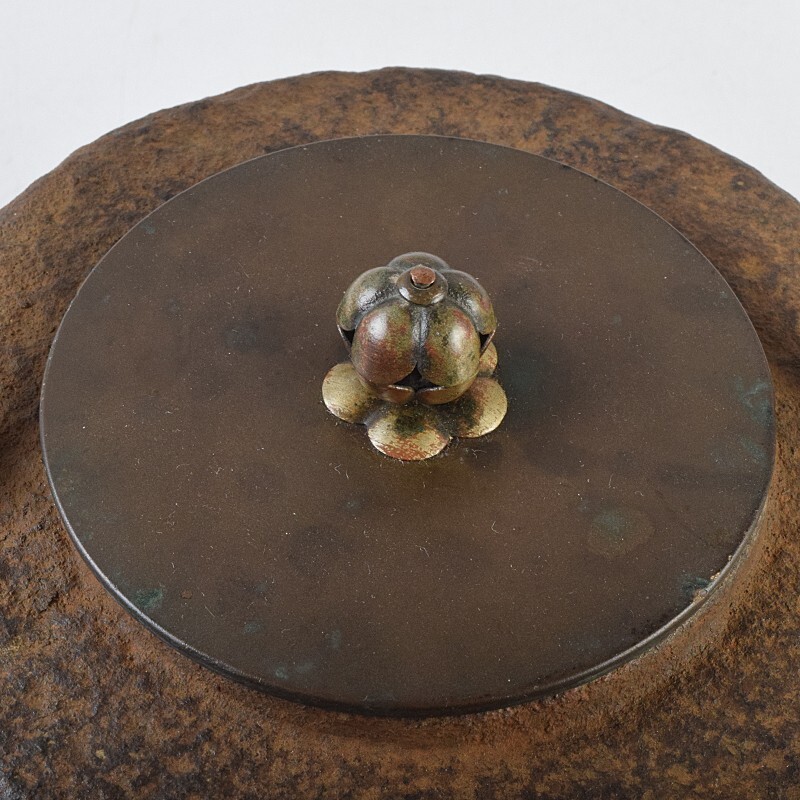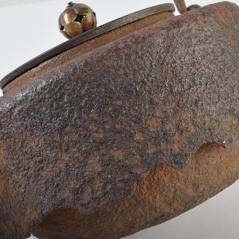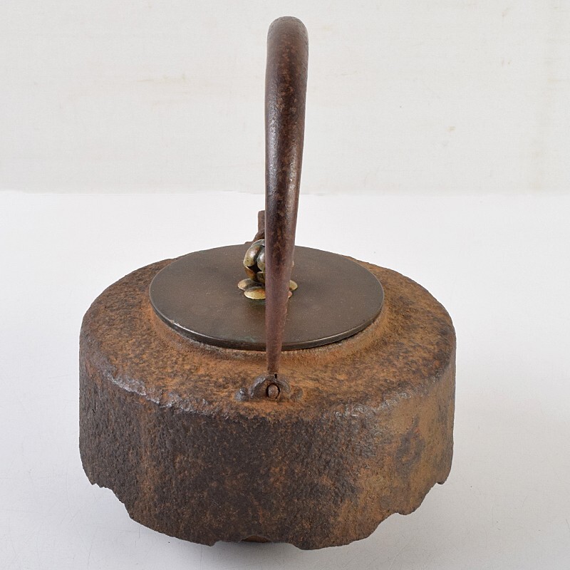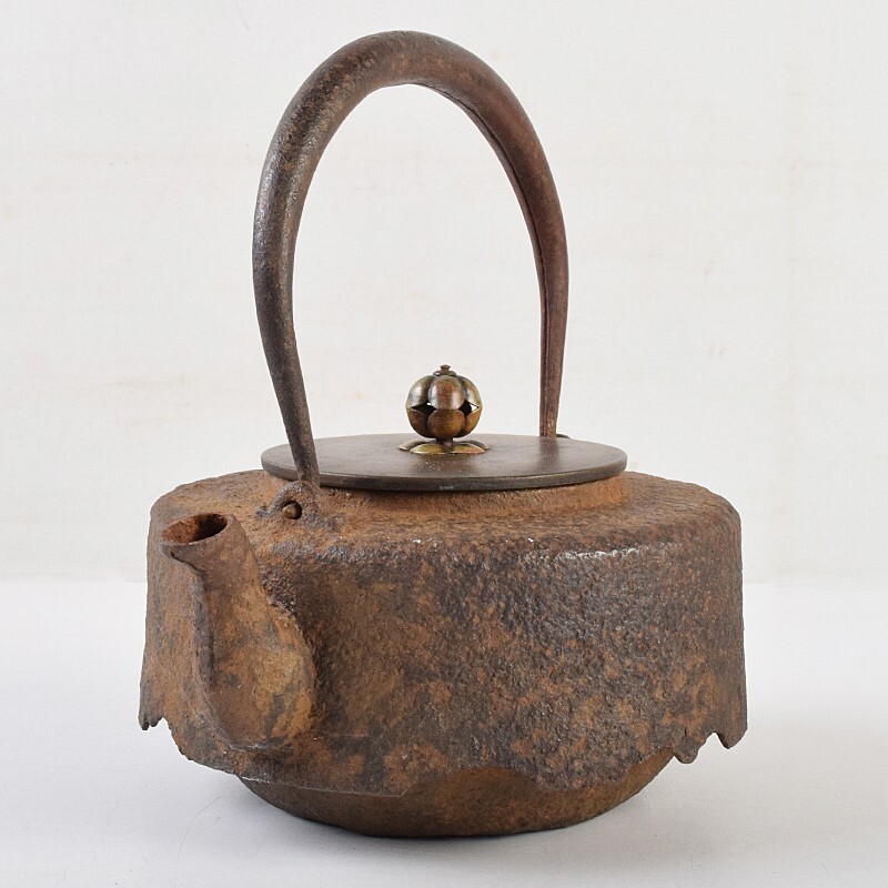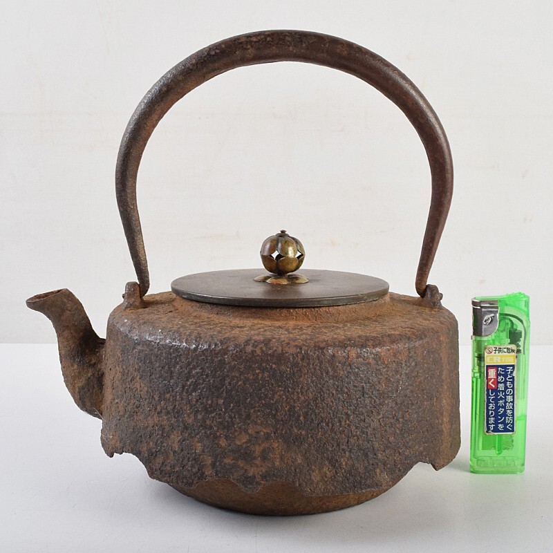 【煎茶道具 龍文堂造 平尾垂形 鉄瓶 鉄釜 VJRM】
