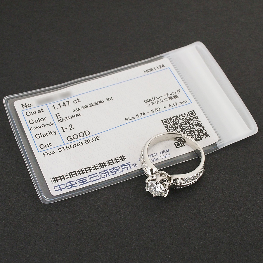 | 商品名 | E-I2-G ダイヤモンド/1.147ct ダイヤ/0.499ct リング |