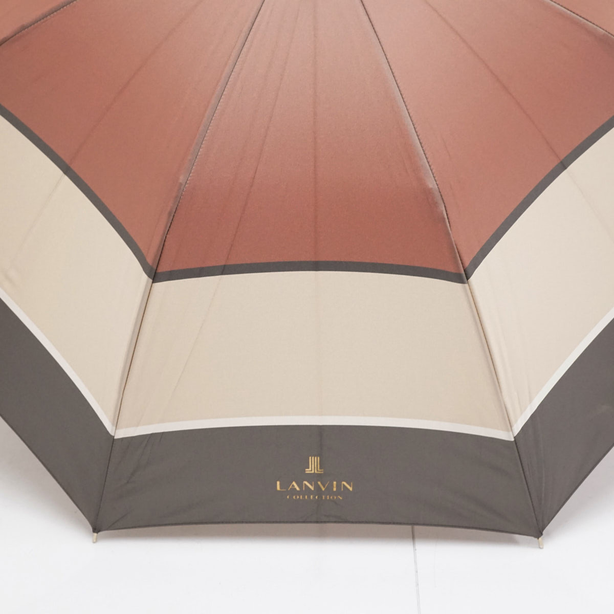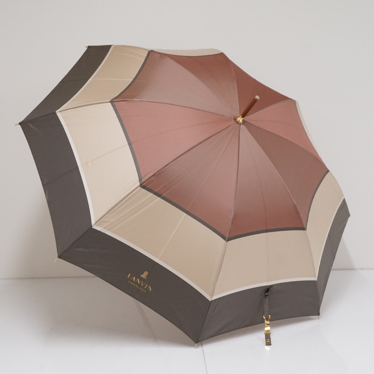 傘 LANVIN COLLECTION ランバンコレクション USED美品 プリントツイル先染 レザー手元 モカブラウン 58cm S3011