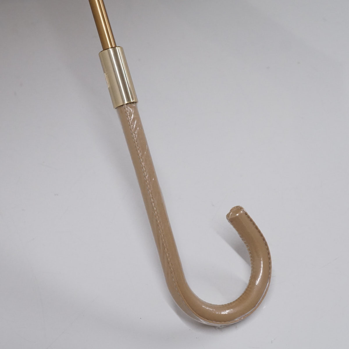 ★☆傘 LANVIN COLLECTION ランバンコレクション USED美品 プリントツイル先染 レザー手元 モカブラウン 58cm S3011☆★