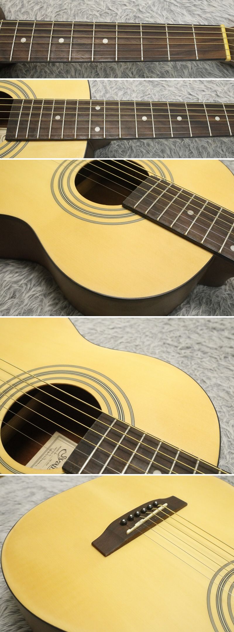 | 商品名/状態 | ●送料無料《北海道・沖縄・離島除く》● 中古 S.Yairi ミニギター YM-16N 動作良好品〔ER-2852〕 ご覧いただきありがとうございます。 S.Yairi(エス・ヤイリ)のミニアコースティックギター「YM-16N」の出品です。 ●モデル:YM-16N ●スケール:約590mm(18フレット) ●ナット幅:約42mm ●弦高(12フレット):6弦 約3.0mm/1弦 約2.5mm(弾きやすい設定) ●ネック:ほぼ真っ直ぐで良好な状態です ●重量:約1.7kg ●ボディ材構成: ・トップ:ラミネート・スプルース ・サイド&バック:ラミネート・アガチス ・ネック:ナトー ・指板/ブリッジ:ローズウッド ■状態■ ・ヘッドに塗装の白濁が見られます。 ・その他、小さな擦り傷や打痕はありますが、全体的に綺麗な印象です。 ・ネックコンディションは良好で、演奏性に問題はありません。 ■付属品■ ※ケースは付属しません。 軽量で持ち運びやすく、自宅練習やアウトドア、旅行用などにも最適な1本です。 初心者の方やサブギターをお探しの方にもおすすめです。 中古品にご理解いただける方のご入札をお願いいたします。 ※現状品、古い楽器にご理解あられる方のみご検討・ご入札下さい。 ノー クレーム・ノーリターンにてお願い致します。 |
