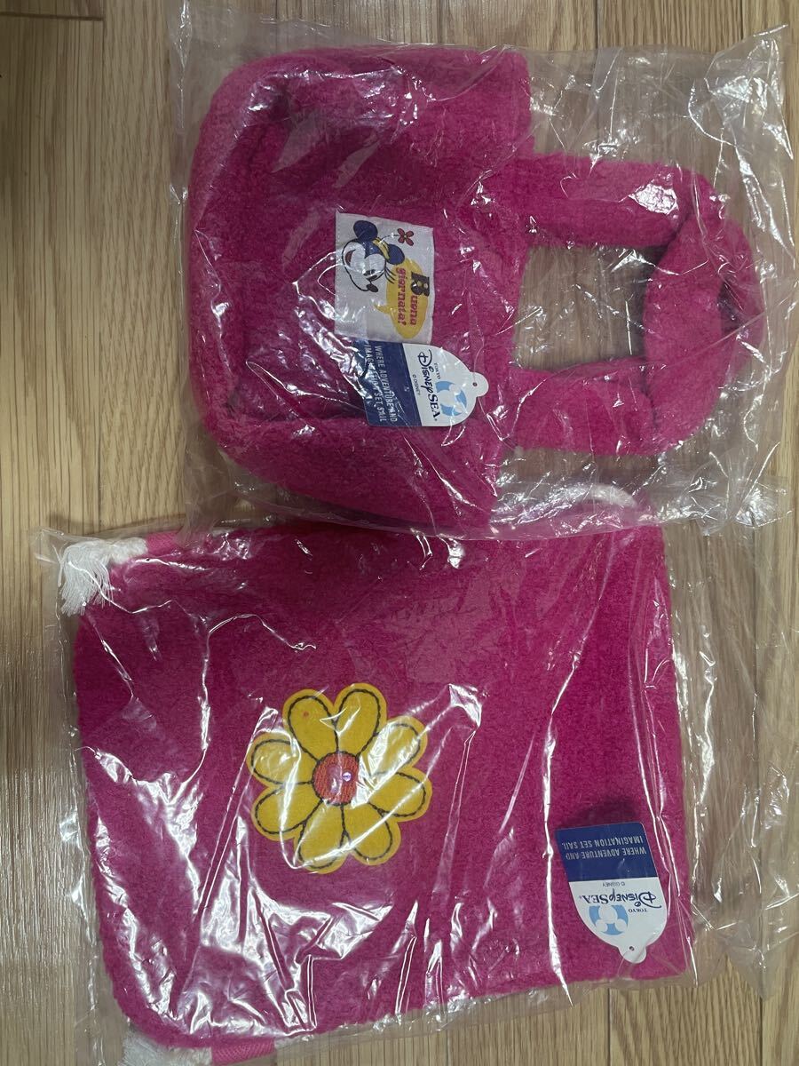 【未使用】ディズニーシー限定 Buona Sera ミニー バッグ&巾着 2点セット ピンク 花刺繍