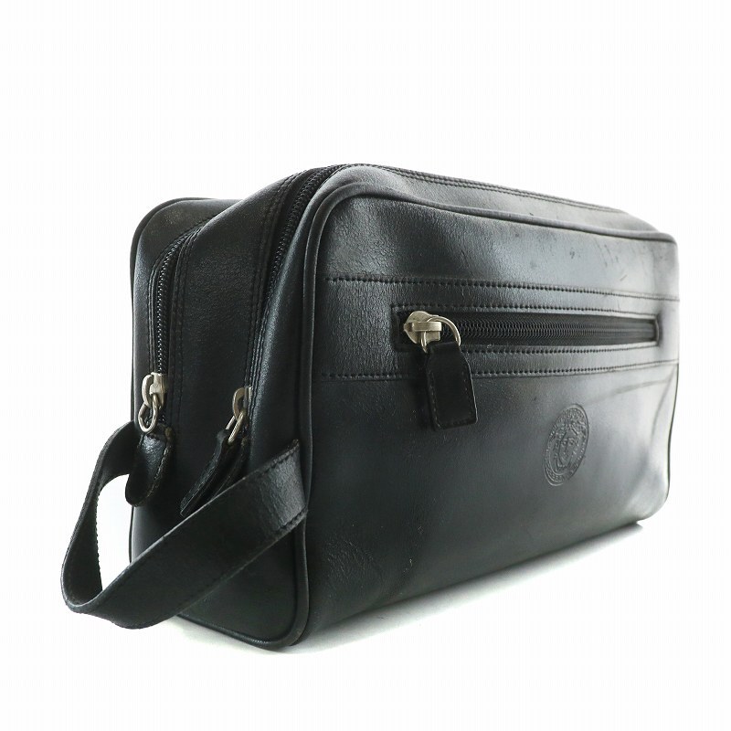 ジャンニヴェルサーチ GIANNI VERSACE セカンドバッグ クラッチバッグ レザー Wファスナー メデューサ ロゴ 型押し 黒