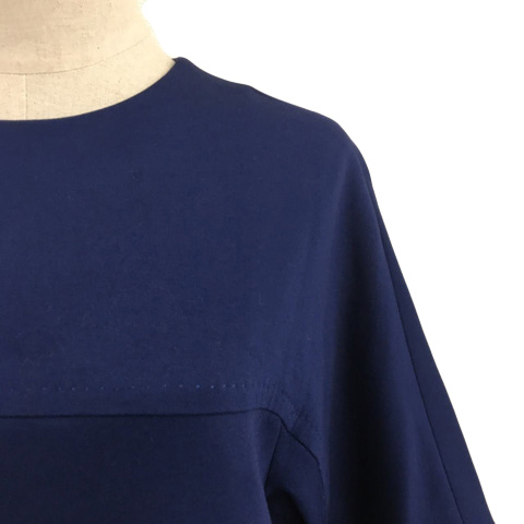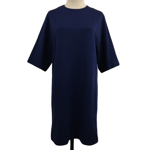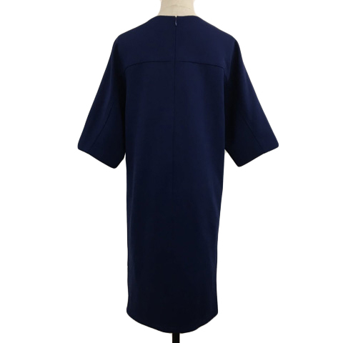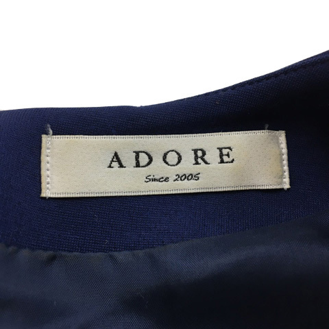 アドーア ADORE ワンピース Iライン 膝丈 ステッチ 無地 七分袖 38 青 紺 ブルー ネイビー レディース