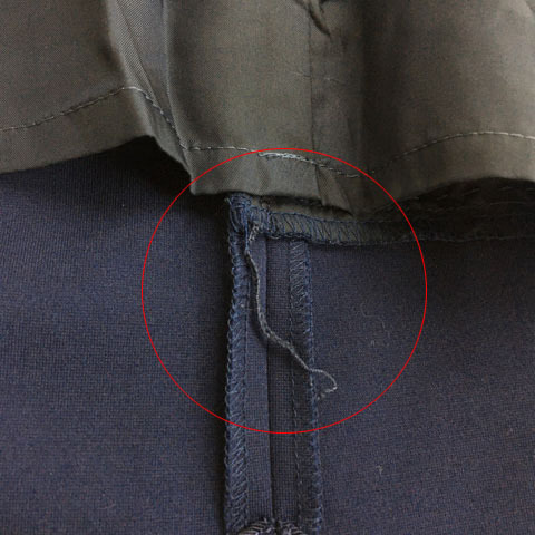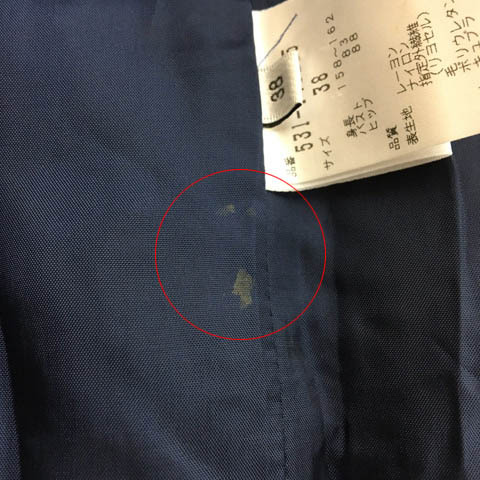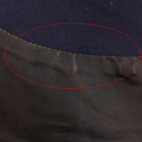 【状態】前の腿辺りに白い汚れがあります。 裏地の首周りに白い汚れがあります。 裏地の素材タグ下に茶色い汚れがあります。 裏地の左ループ糸が切れています。 ご理解の上お買い求め下さいませ。