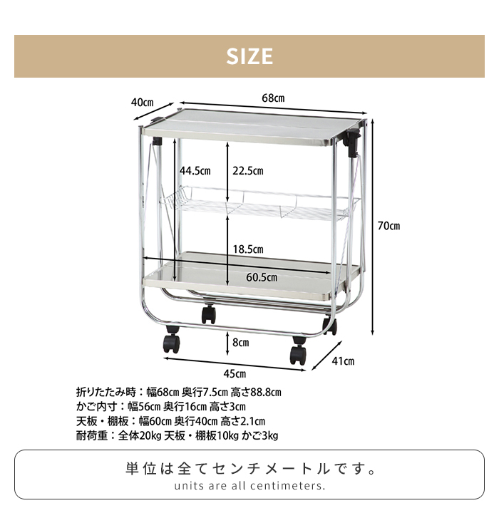 [全体]幅68×奥行40×高さ70cm [折畳時]幅68×奥行7.5×高さ88.8cm |