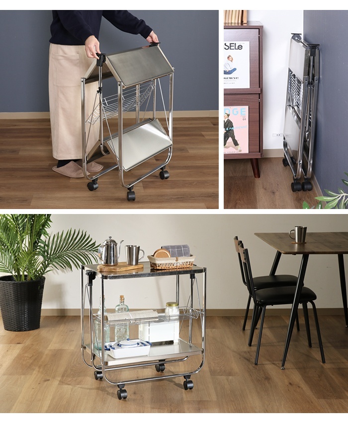 使うときだけで場所を取らない! スタイリッシュな折りたたみワゴン。 |
