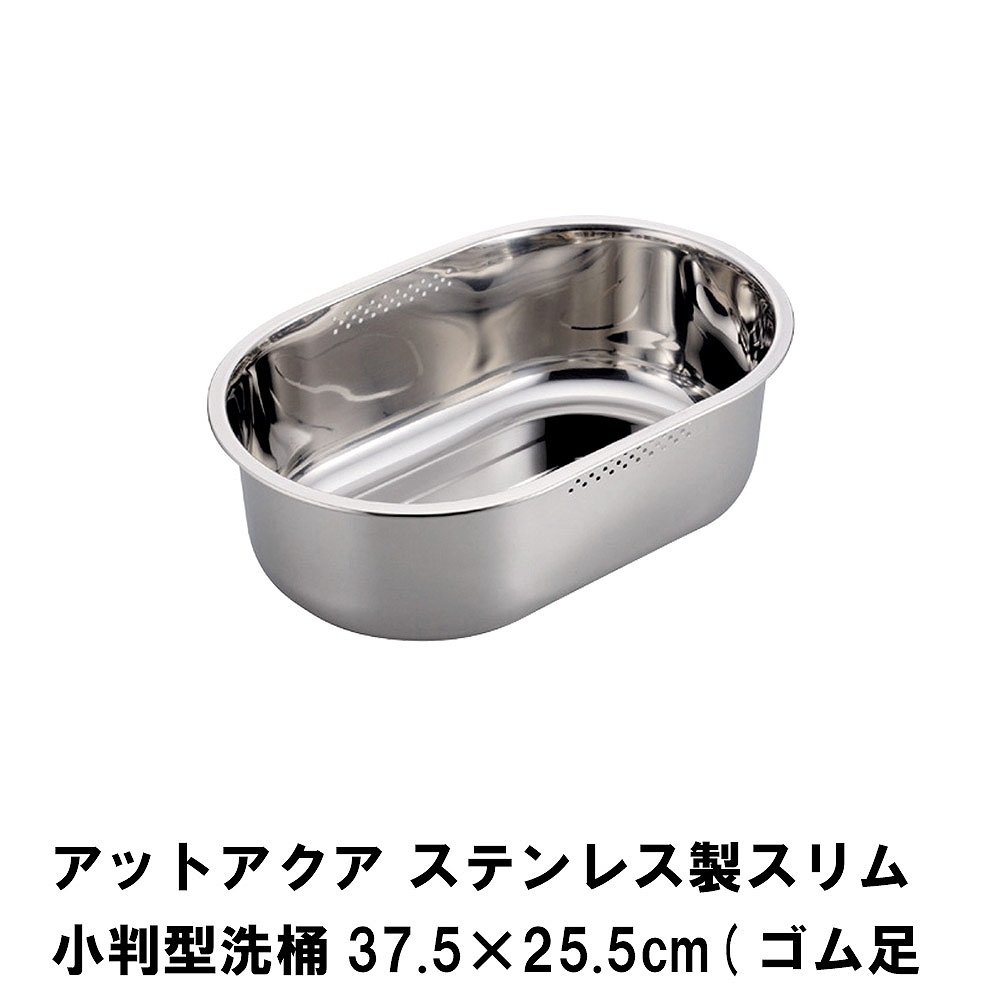 商品名 | アットアクア ステンレス製スリム小判型洗桶37.5×25.5cm ゴム足付 M5-MGKPJ02475 |
