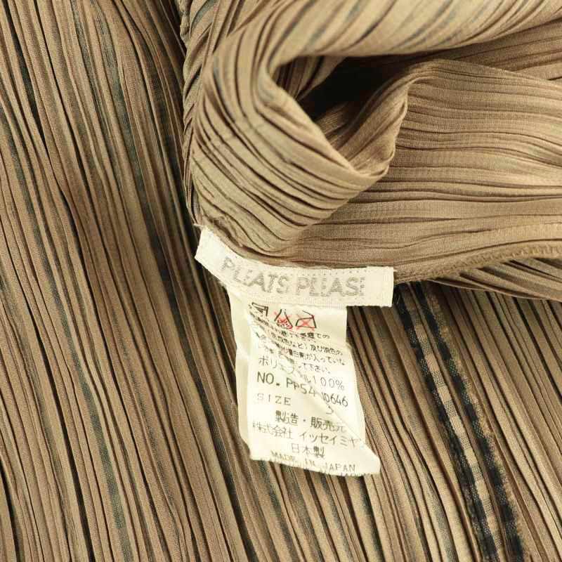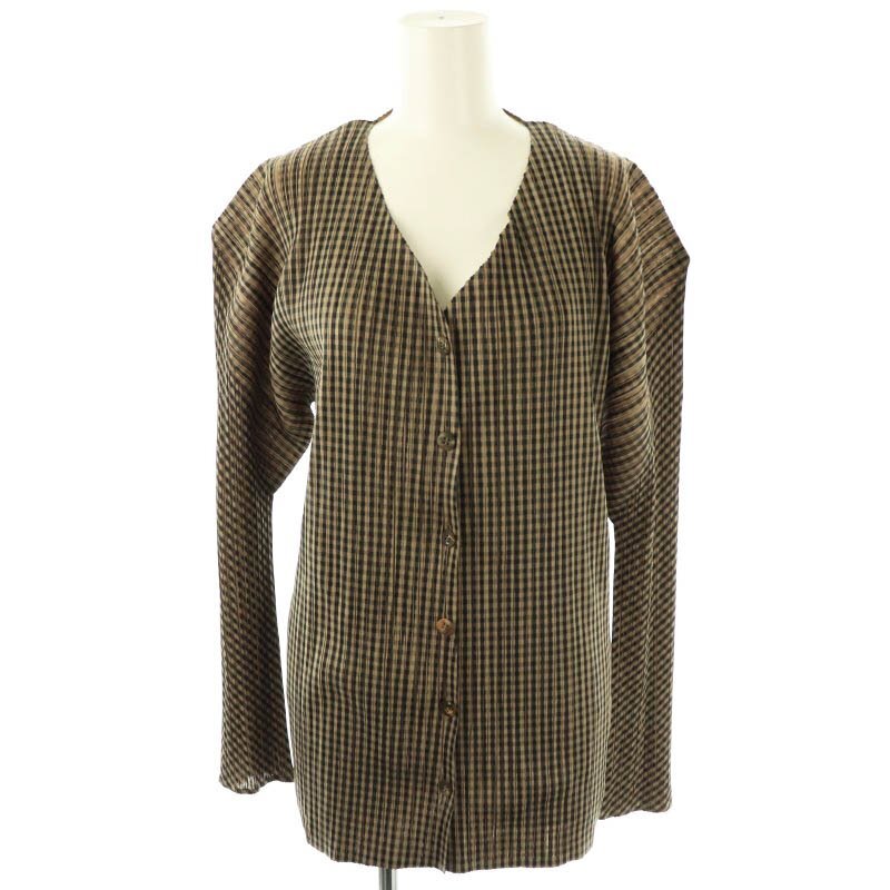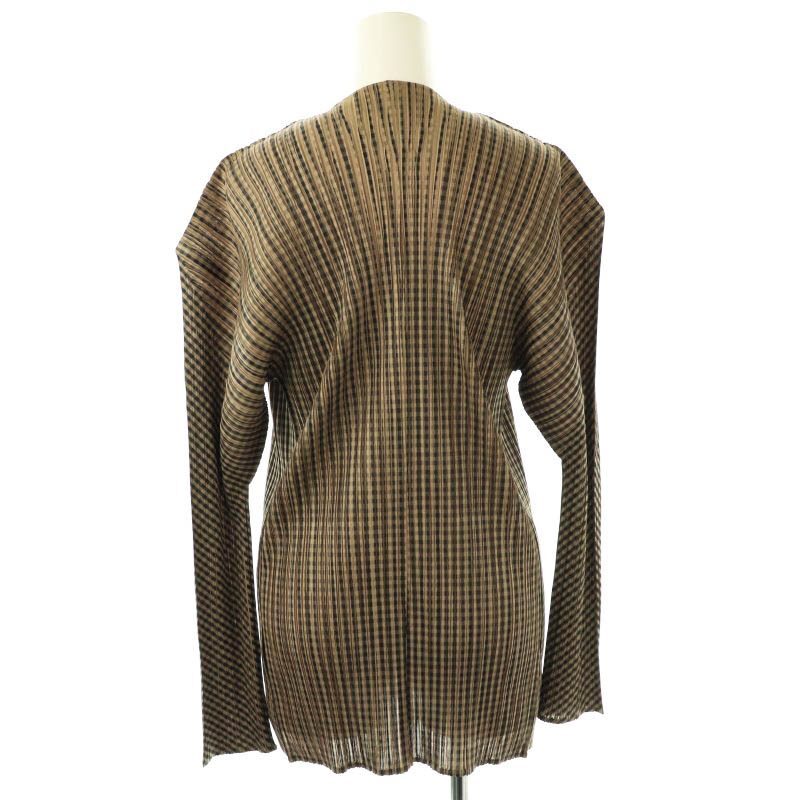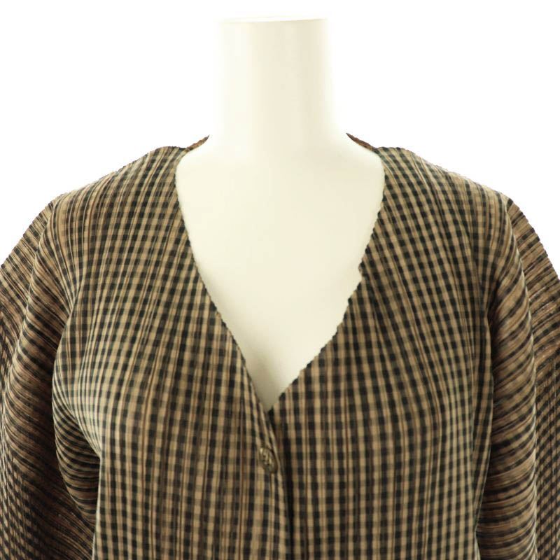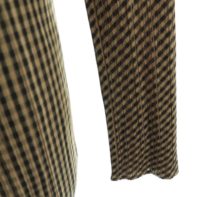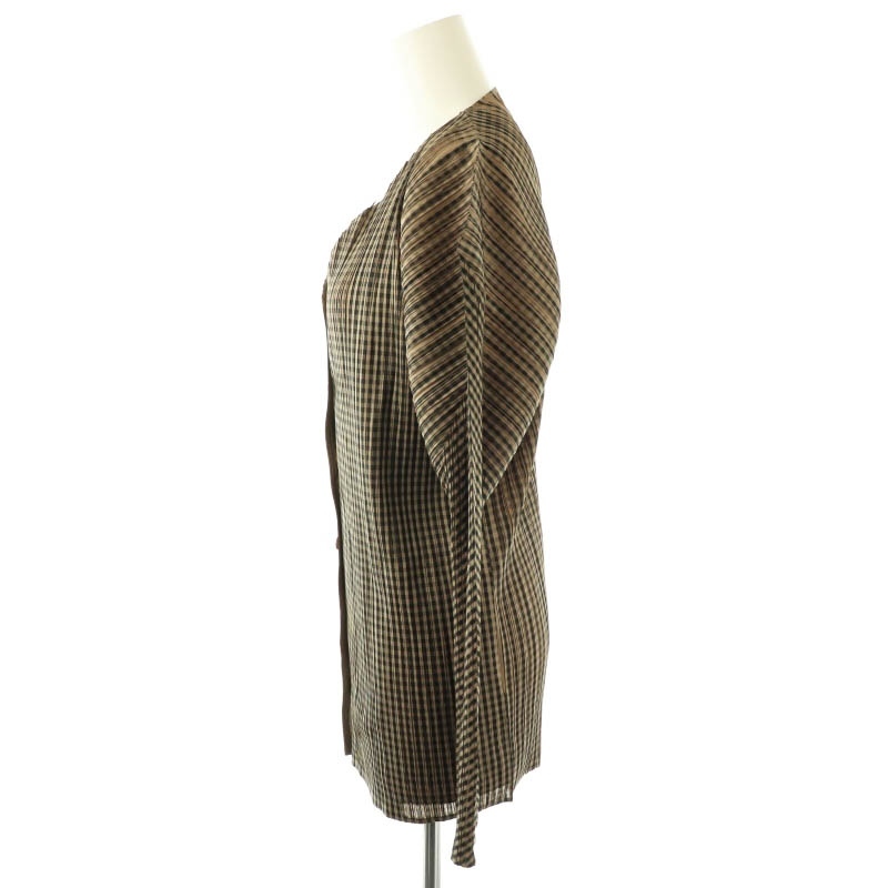 プリーツプリーズ PLEATS PLEASE ギンガムチェックシャツジャケット ノーカラー 薄手 3 ベージュ ブラック /DO ■OS レディース