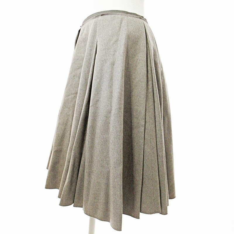 フォクシー FOXEY 近年 39895 ウール フレア プリーツ スカート 38 グレージュ 0725 IBO75 レディース