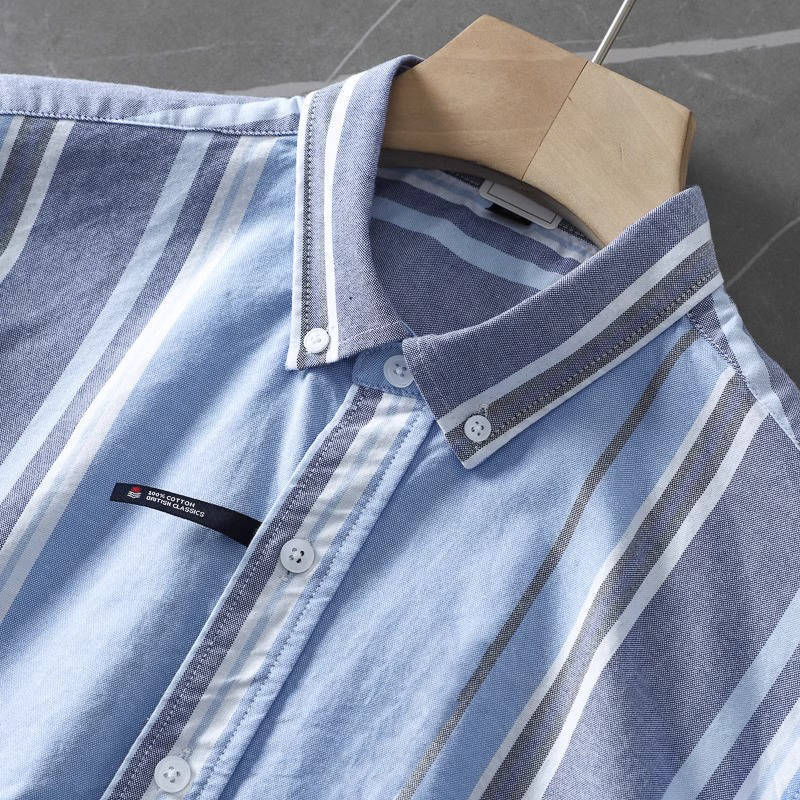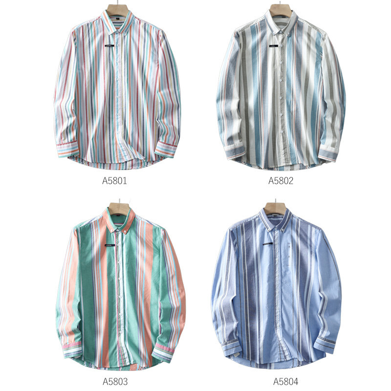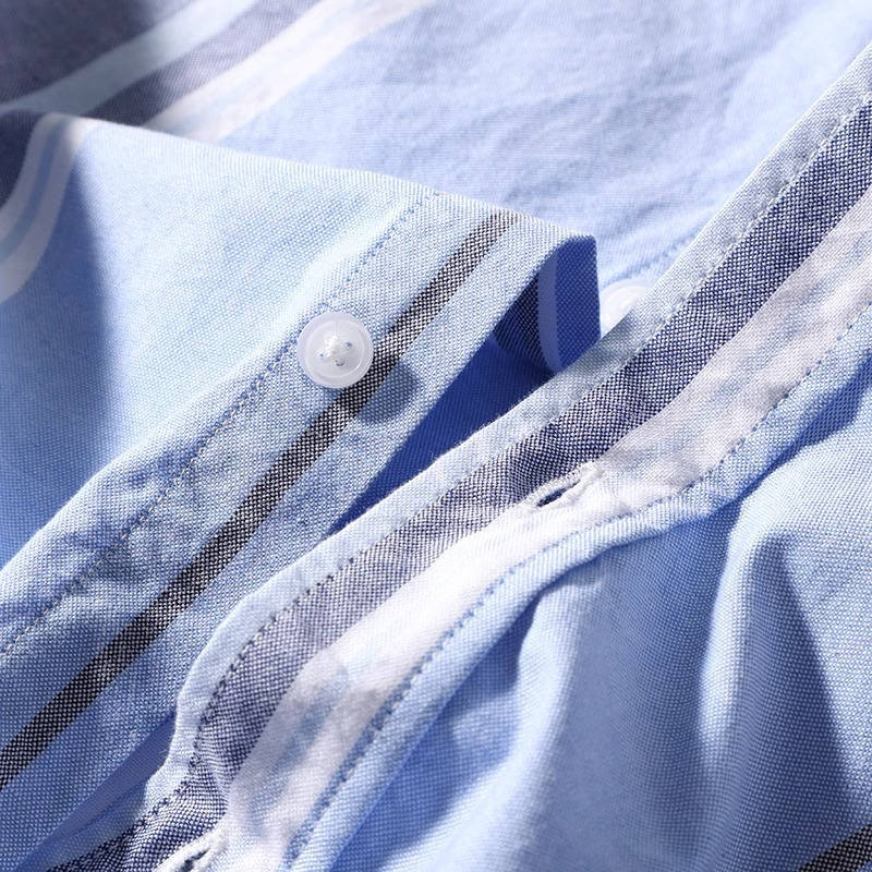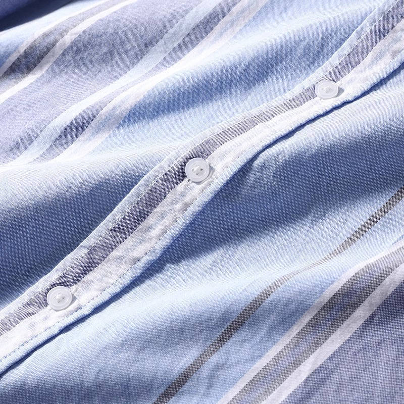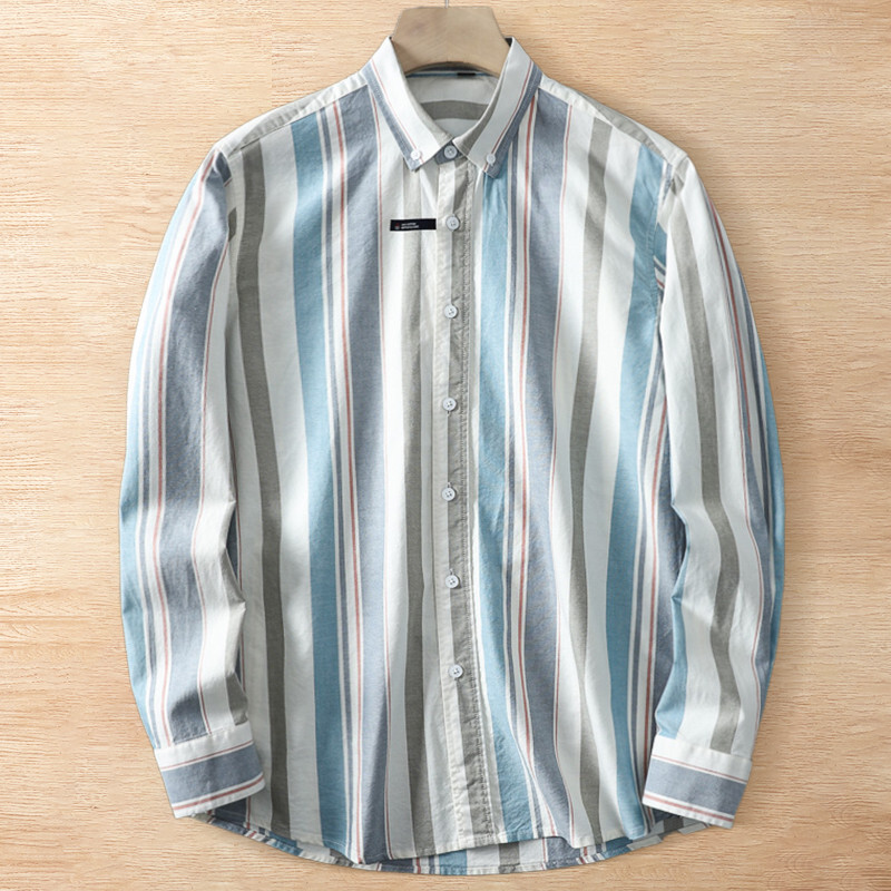 新品 DCKMANY 青 灰 生成 ストライプ オックスフォード ウォッシュ 綿100% 長袖シャツ メンズ ボタンダウン 春秋 レギュラーカラー ワイシャツ カジュアル トップス