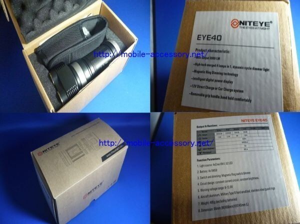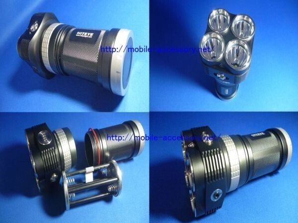 | 商品説明 | NITEYE EYE40はCREE XM-L U2 4灯搭載 MAX3000ルーメンのハイパフォーマンスフラッシュライト。 ロータリー式スイッチを採用し直感的で素早い操作が可能です。充電機能を搭載し、付属のDC12Vシガープラグにて車から充電が可能です。18650型のリチウムイオン充電池を4本装填して充電を行ってください。 本製品は非常に明るい光を発するので全点灯時は非常に熱くなります。火傷防止のためのハンドルが付属しております。ハンドルを付けてのご使用をオススメします。ハンドルの装着はコインなどを使い確実に行ってください。 リングスイッチを回すことで点灯、モード切り替えが可能。 左からストロボ点滅→スタンバイ(消灯)→Low→Med→Hi→TURBOとなります。オーバーヒート防止の為、バッテリーの残量により段階的に照度が低下します。 バッテリーの残量を示すインジケーターはモードを切り替えた直後に2秒間表示されてその後消灯します。ヘッドを1周程度緩めると誤点灯防止が機能します。 エアロクラフトアルミ合金から削り出されたボディにはTYPE3HA表面処理が施されております。 ステンレスベゼルを装着し、低反射コートされたガラスレンズ風防を守ります。リフレクターは鏡面リフレクターを採用。一つ一つのリフレクターは小さく浅いですが、実際に照射すると4つの光軸は一つに重なり1本の強い光軸として遠方を照らすことが可能です。周辺光も充分に発生しますので一帯を照らすことにも適しております。 全長145mmとコンパクトボディからは想像だにしないハイルーメンが魅力の一本です。 |