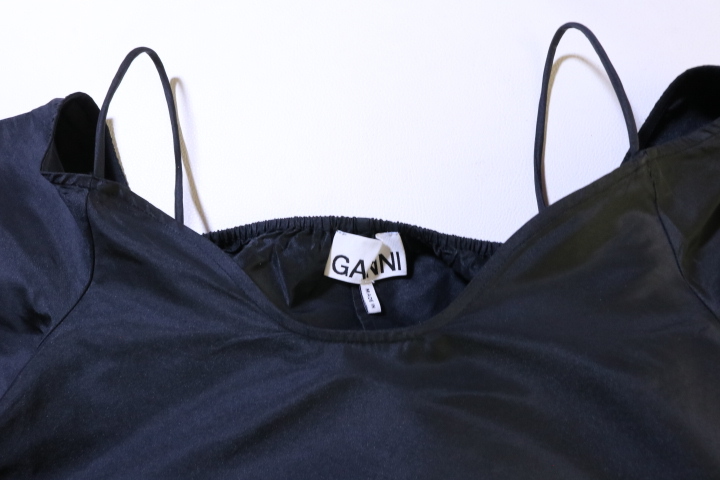【超美品】☆GANNI ガニー:微光沢 タフタ ミニドレス ワンピース 36 ガニー/F7737-UL35Beaded Taffeta Mini Dress/ブラック