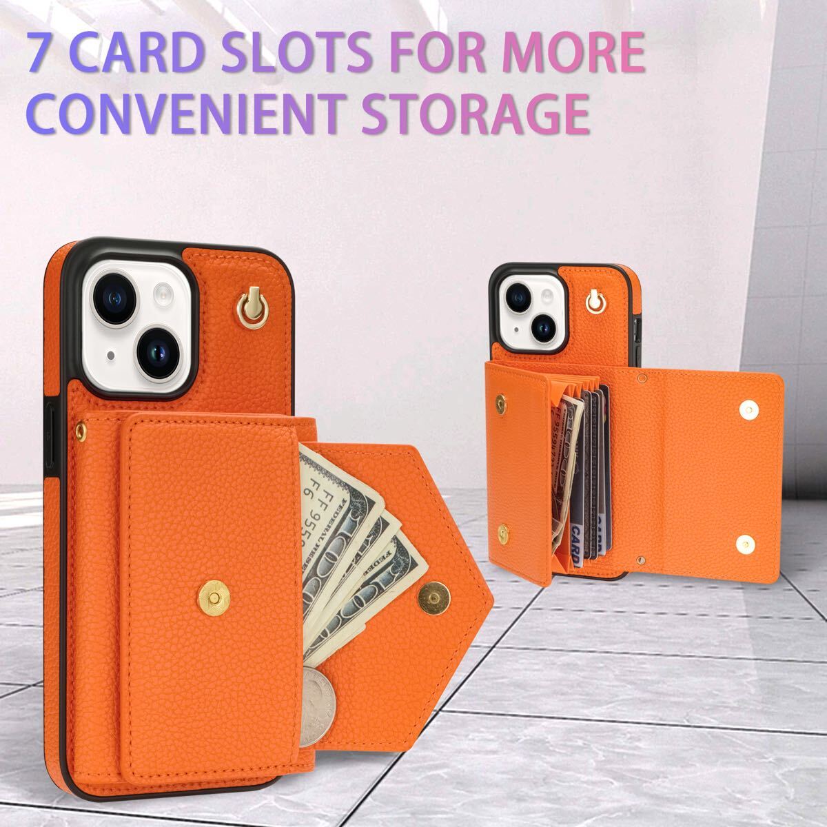 対応機種: iPhone 14 plus おしゃれな肩掛け、首掛け用スマホケース,お出かけにも仕事にも使えます。 横置きタイプです。背面にカード入れを複数設置。実用性が高く、各機種にピッタリの専用設計により、装着後、音量ボタン、カメラ、コネクターなどの使用に支障なし、使い勝手がとてもよいのです。 カード収納フラップの背面にポケットがついているので、交通カード、クレジットカード、ICカード、定期券、ビジネスカード、名刺などが収納でき、出かけにとても便利です。 360°全面保護:レーム部分とカメラのフチを高く設計し。平らな場所においても、液晶画面とカメラレンズに直接触れることがなく、またケースの四隅に落下時の衝撃を効率よく吸収するための技術(エアクッションテクノロジー)を採用して、落下時の衝撃を最小限に抑えます。 首掛け/斜め掛けストラップ機能付き。 調節可能ショルダーストラップ長さ1.5メートル、可斜めがけ、可肩掛け。携帯電話が紛失する恐れはなし、ハンドバッグを持たずにどこでも旅行の贅沢さを満喫できます。ケースだけが必要な場合、ストラップは取り外し可能です。 | |||