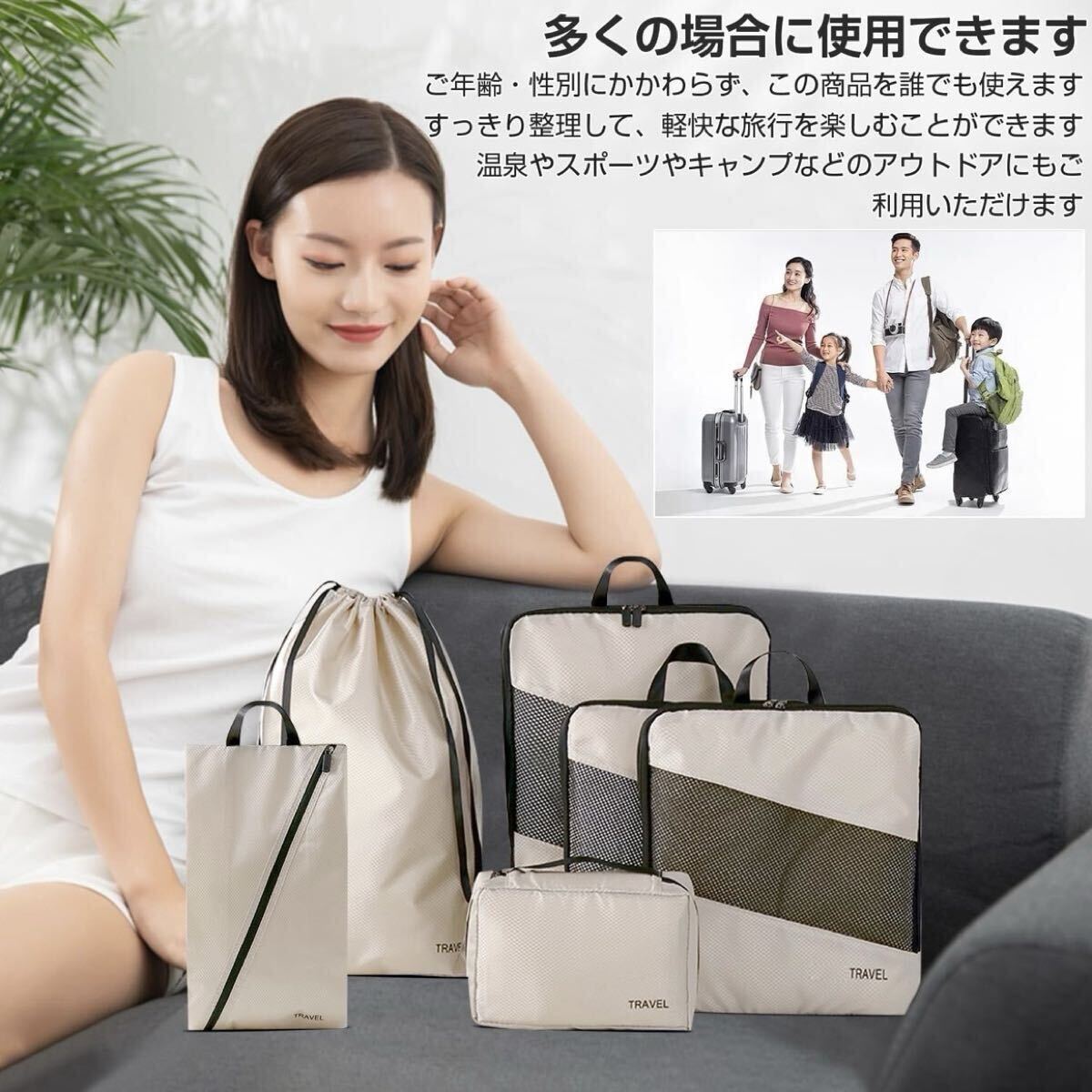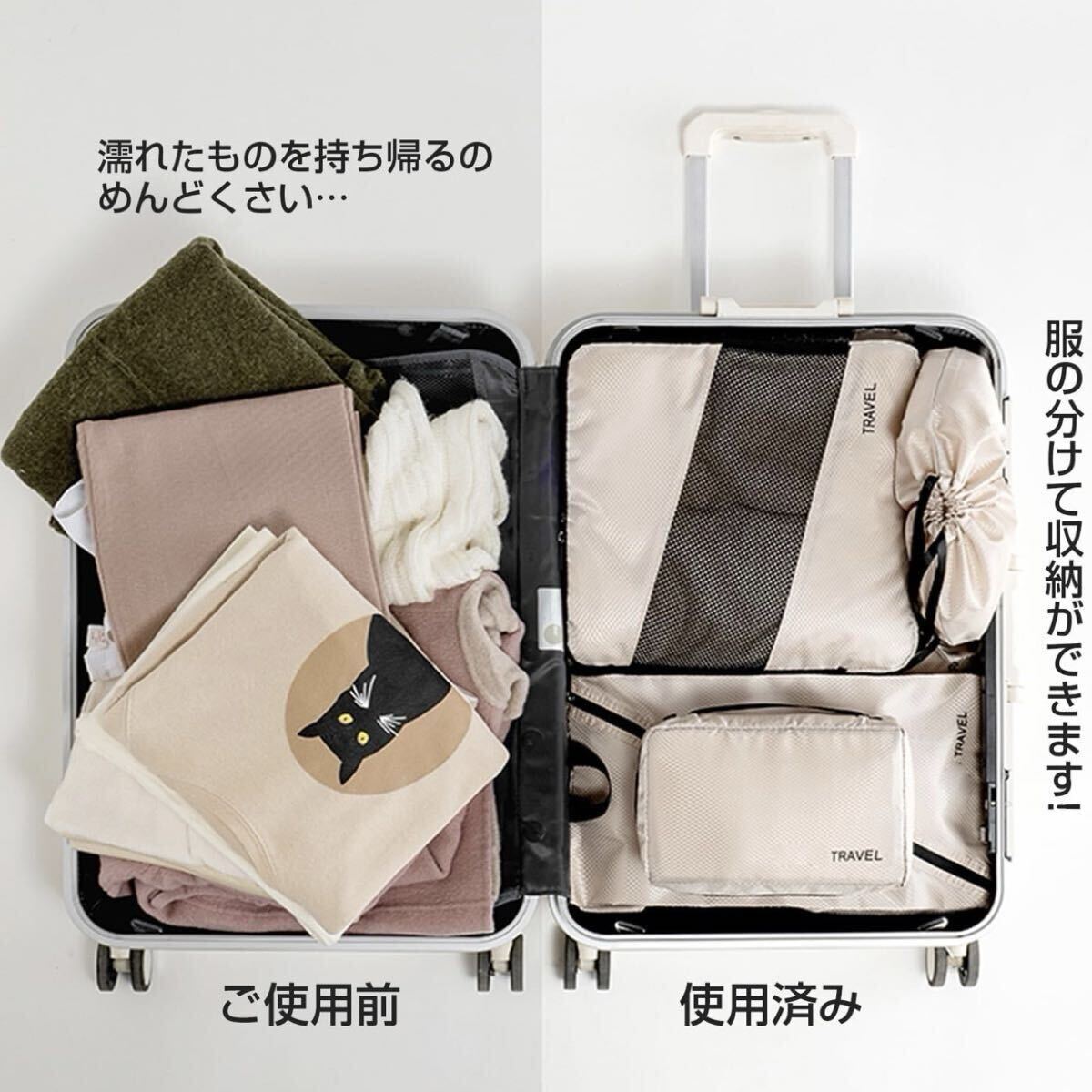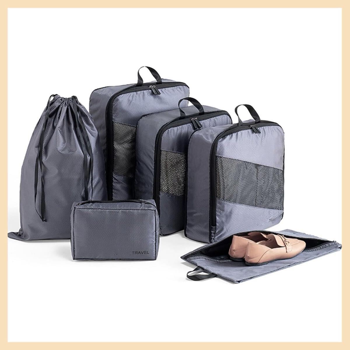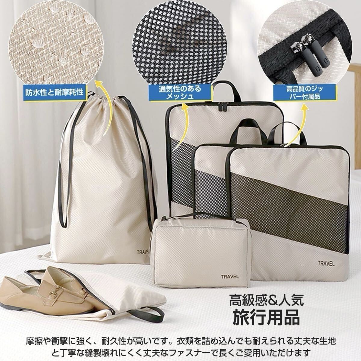 圧縮バッグ3つ+化粧品バッグ1つ+ドローポケット1つ+シューズバッグ1つ。 強化ポリエステル生地。