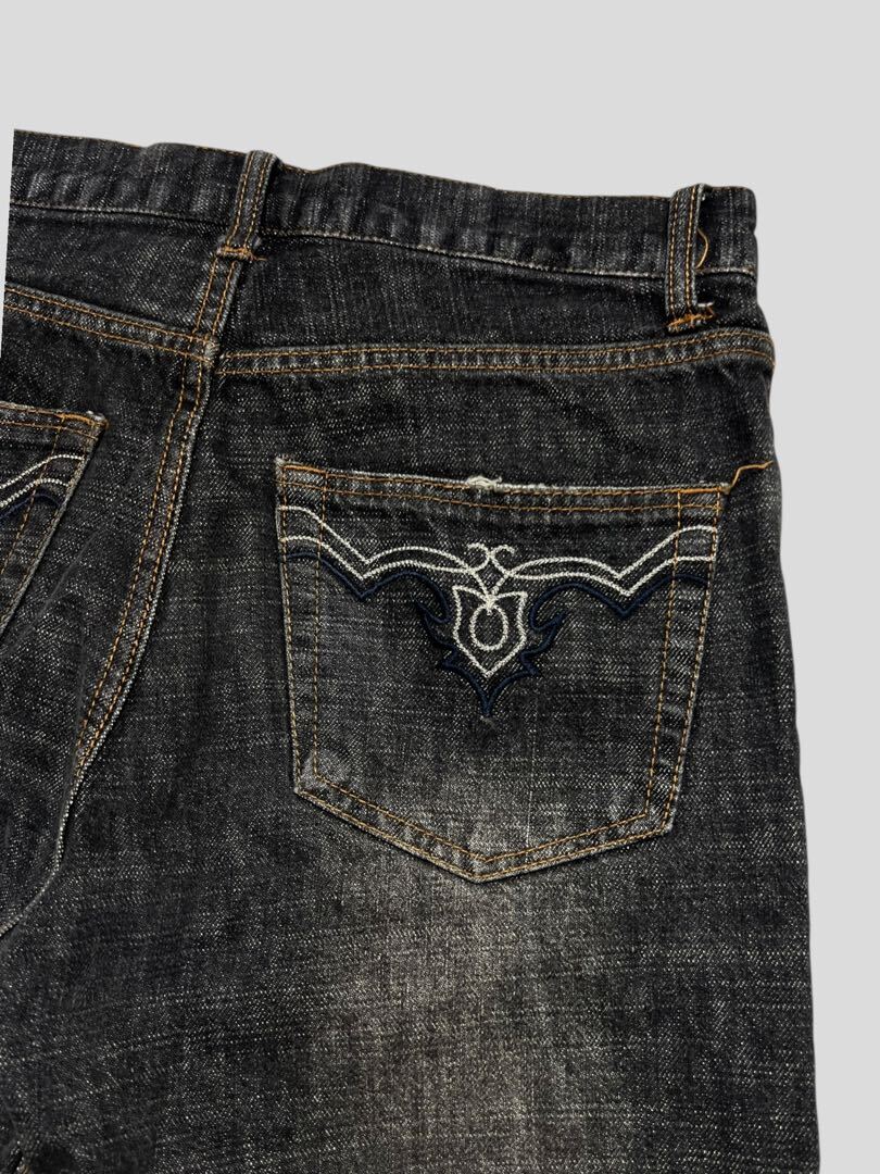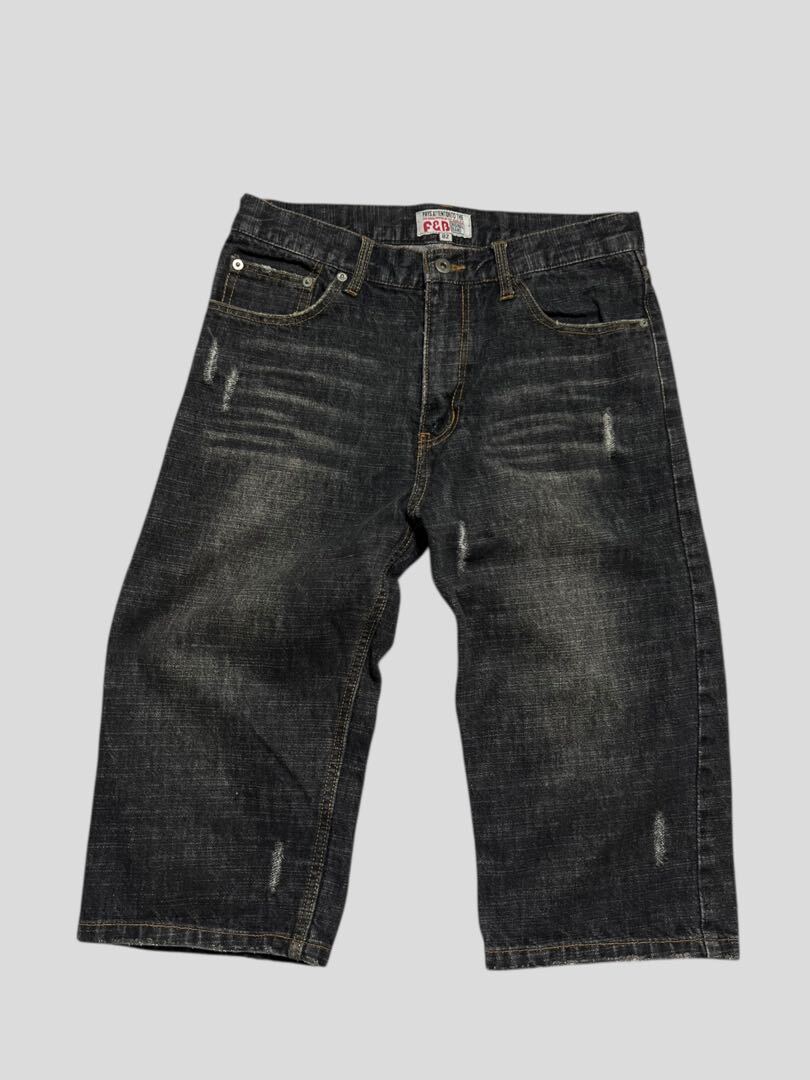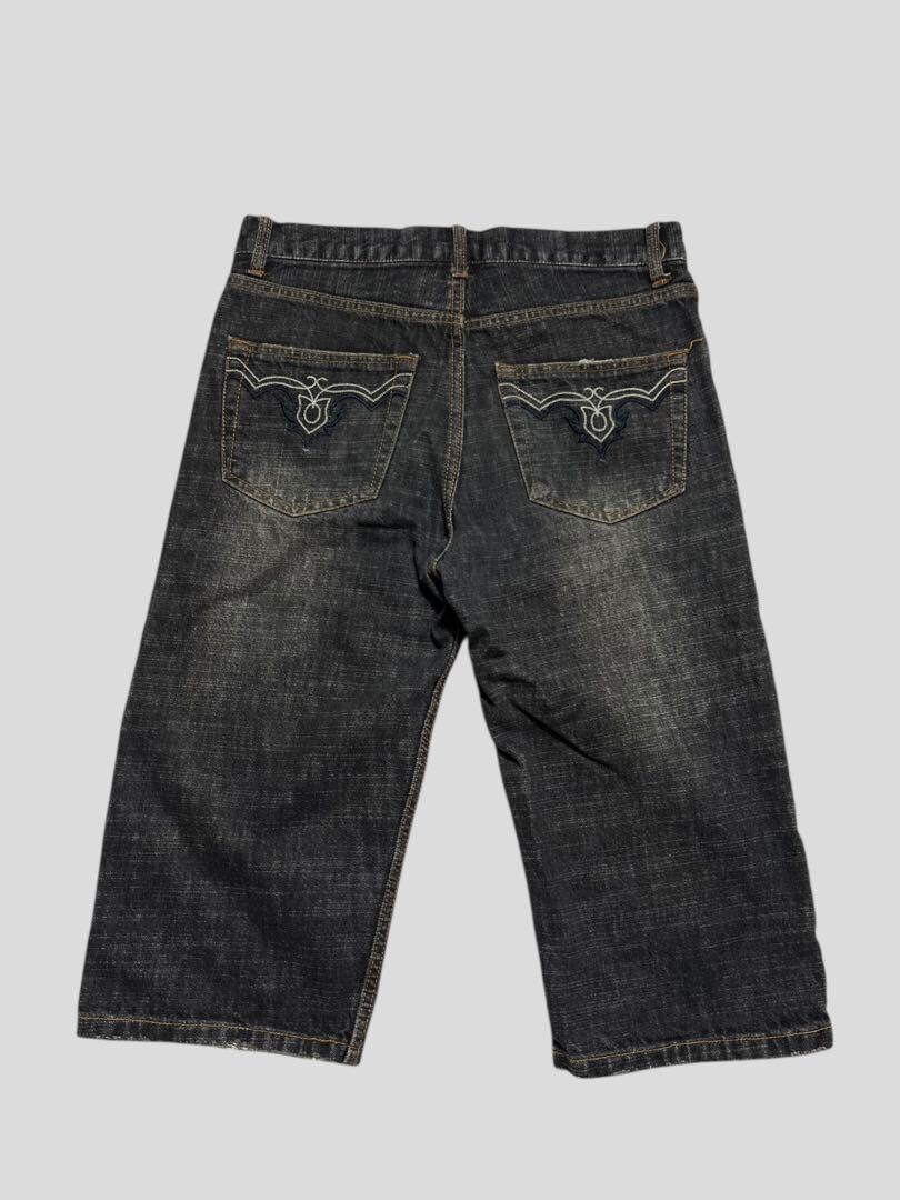 00s F&B ブラックデニムハーフパンツ ワイド バギー 刺繍 Y2K W32