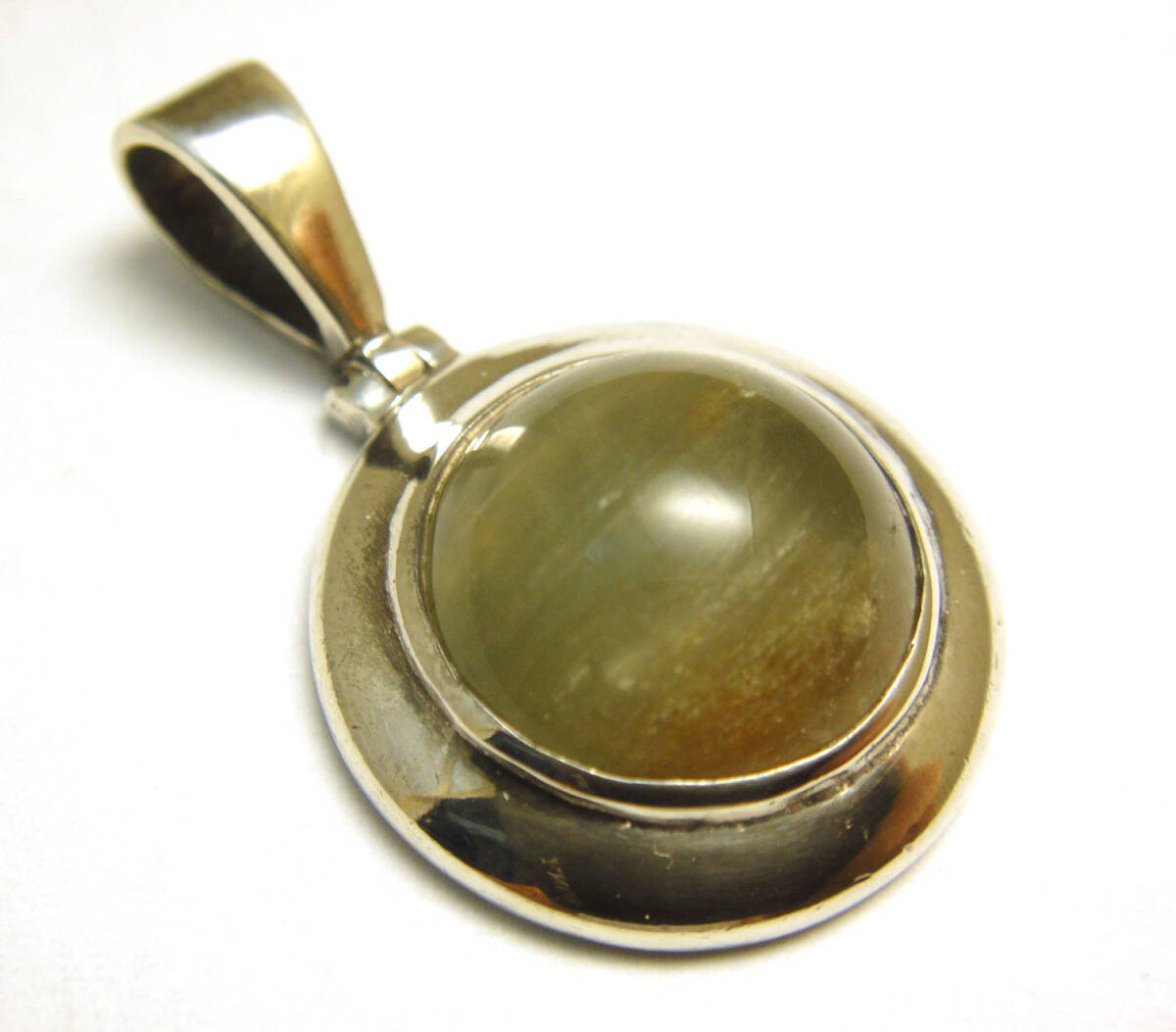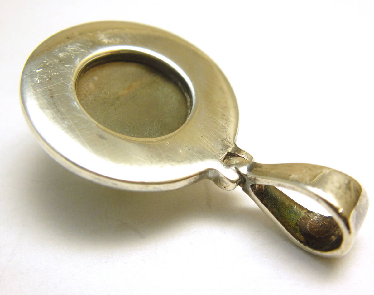SP◆USED◆洗浄済 銀製 7.3g 天然グリーンクォーツ ヴィンテージラウンドペンダントトップ | |||