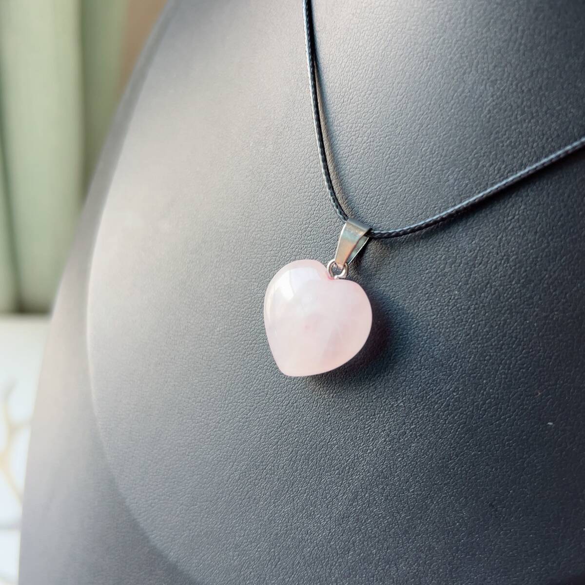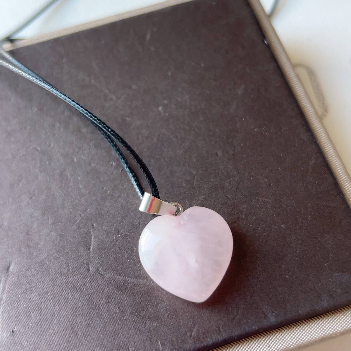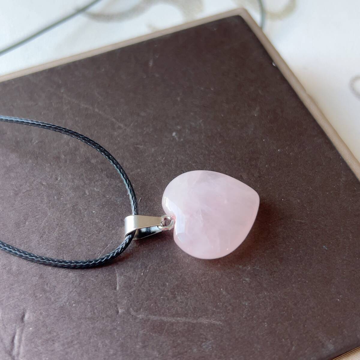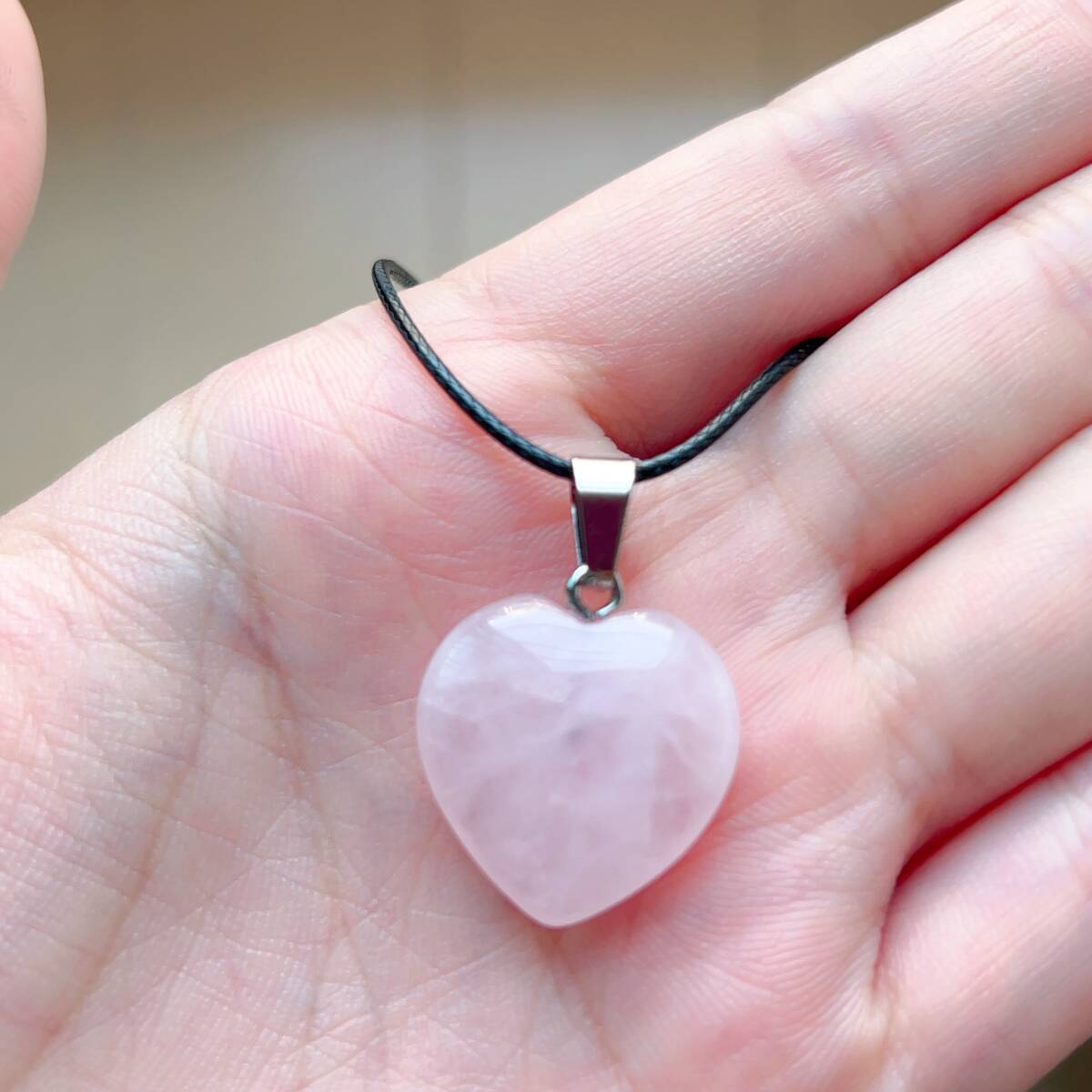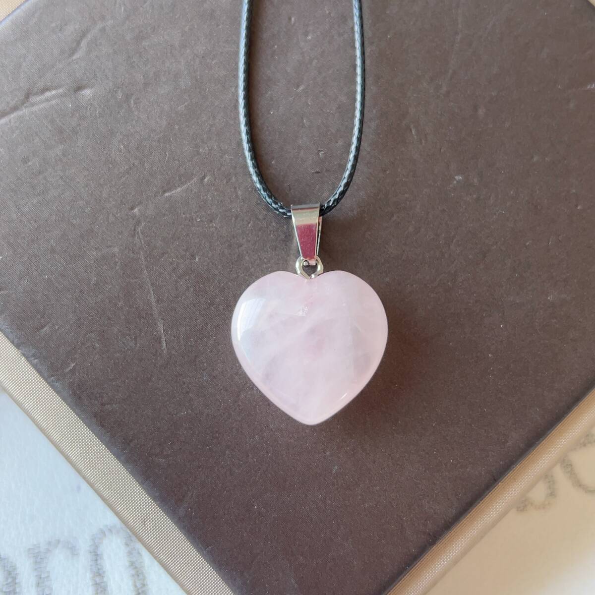 ◇ローズクォーツ(紅水晶)◇ネックレス◇ペンダント◇ハート形◇パワーストーン◇天然石◇巾着袋付き◇プレゼントにも 039P7283