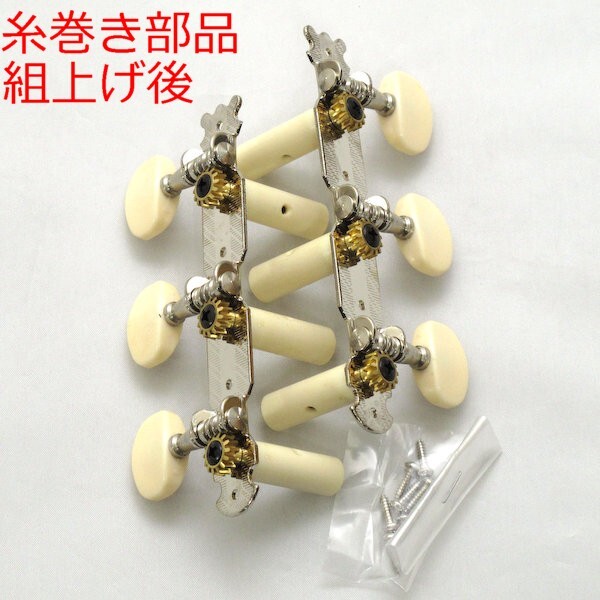 ※糸巻きの組立てにはプラスドライバーが必要となります。また組み上げ後のスムースな動作のためにグリス等の塗布をお勧めします。※取付用ネジを楽器側にねじ付ける際には必ず下穴をあけてください。下穴が適切でないと楽器側に割れを生じたり、ネジが破断する恐れがございます。※糸巻きを交換する場合には、元のネジ穴を適切に補修した後、下穴をあけてください。※本品はクラシックギター弦専用です。フォークギター弦は絶対に使用しないでください。