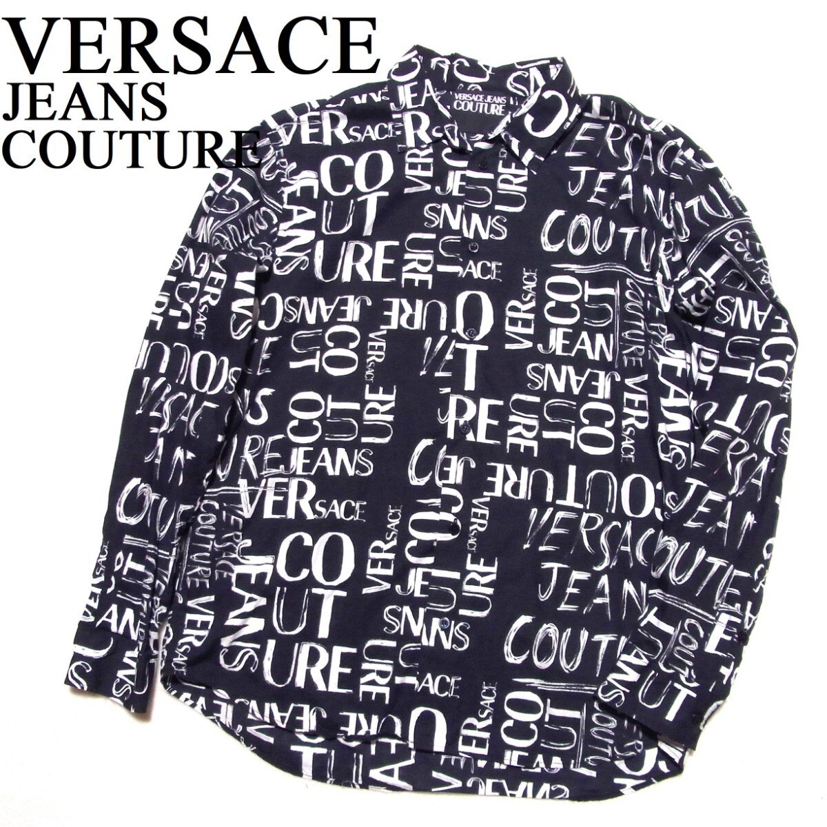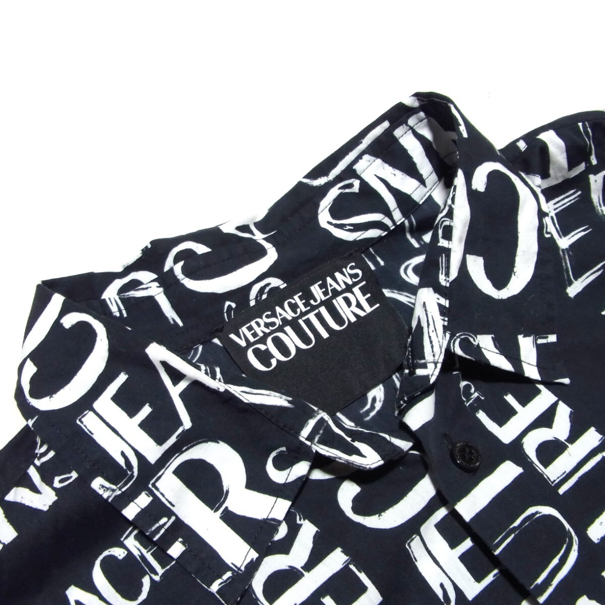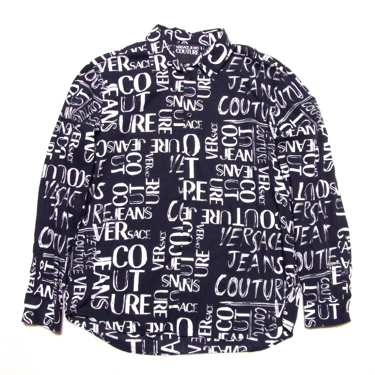 ★商品名…23SS VERSACE JEANS COUTURE ヴェルサーチェ ジーンズ クチュール ロゴ 総柄 シャツ 52 黒 ブラック グラフィティ グラフィック
