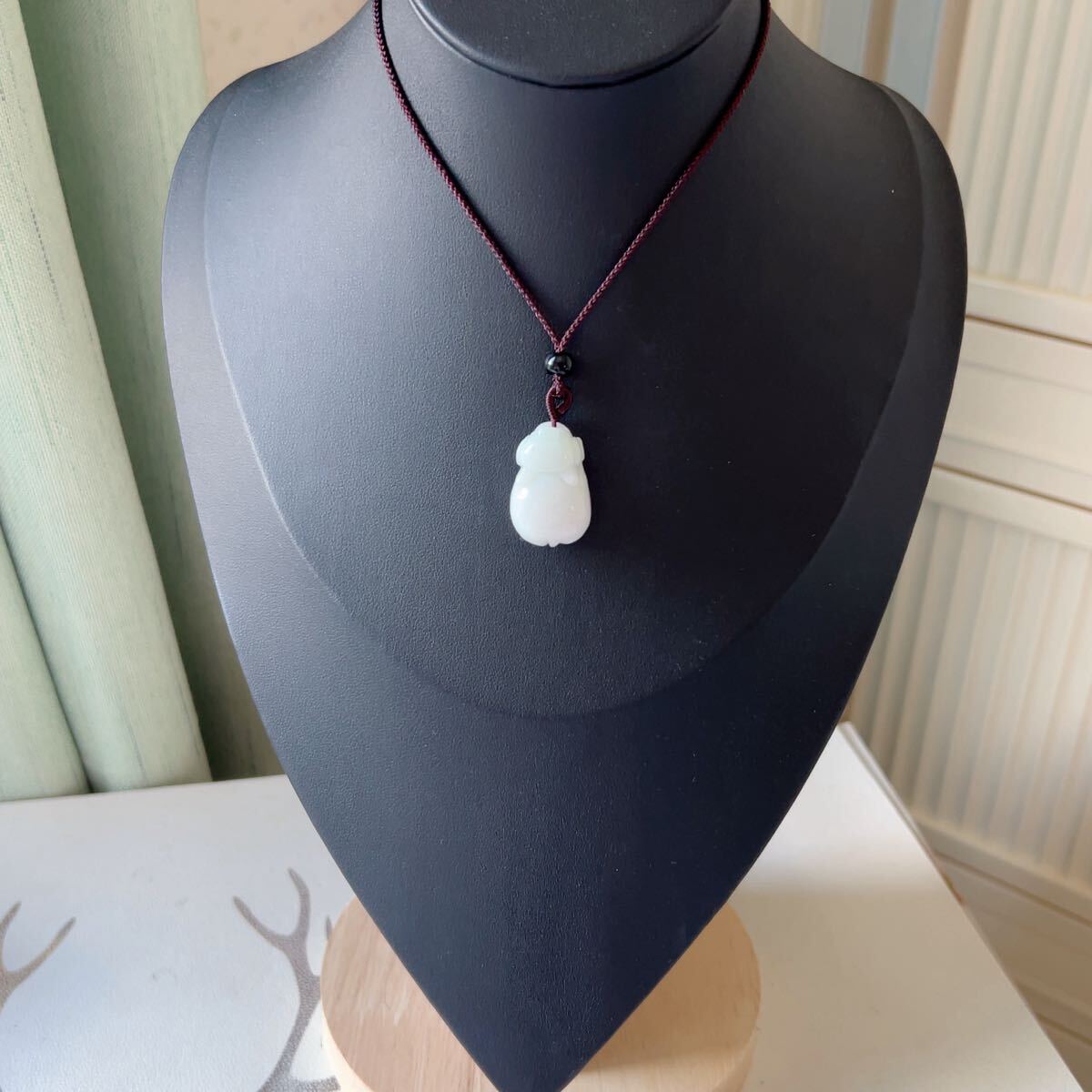 ◇ジェイド(本翡翠)◇ヒスイ◇ネックレス◇ペンダント◇猪形◇彫刻◇天然石◇パワーストーン◇巾着袋付き◇プレゼントに 039P72812