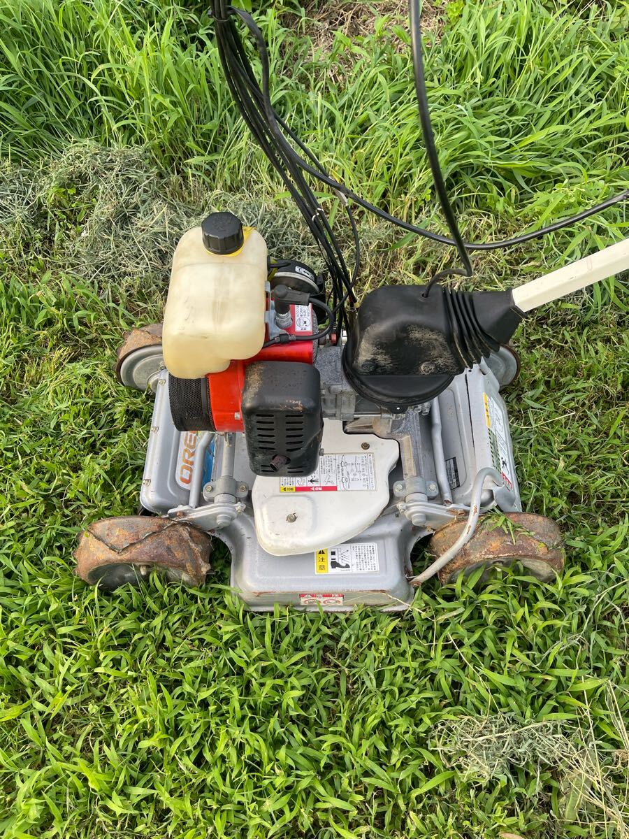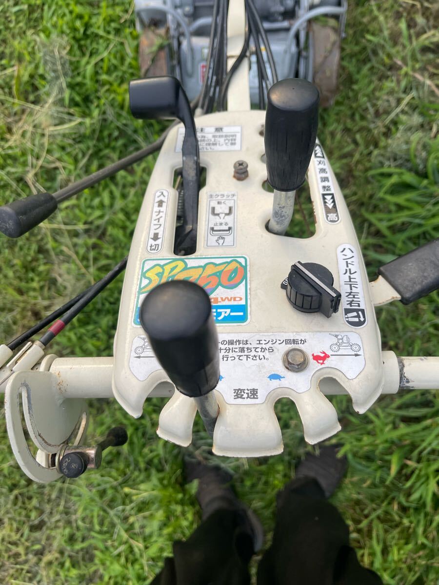 中古品、ハンドル上下左右回転、伸縮、高さ調整、エンジン始動,前進高低速,後進高低速 ,刃の回転、草刈確認しました、草刈良好です、動画を作りの際にエンジンの回転は多少早くてキアはトキトキに入りにくい、その後に調整してよくなりなした、通常に使用できます、現状渡し、傷、汚れ、錆などがあります、ご了承の上に入札をお願いします。 ※動画確認はこちら:オーレック スパイダーモア SP850自走式草刈機
