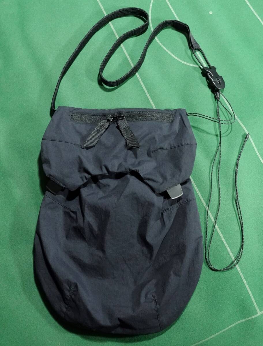 薄手の軽量ストレッチナイロン素材を使用した縦長サコッシュです。