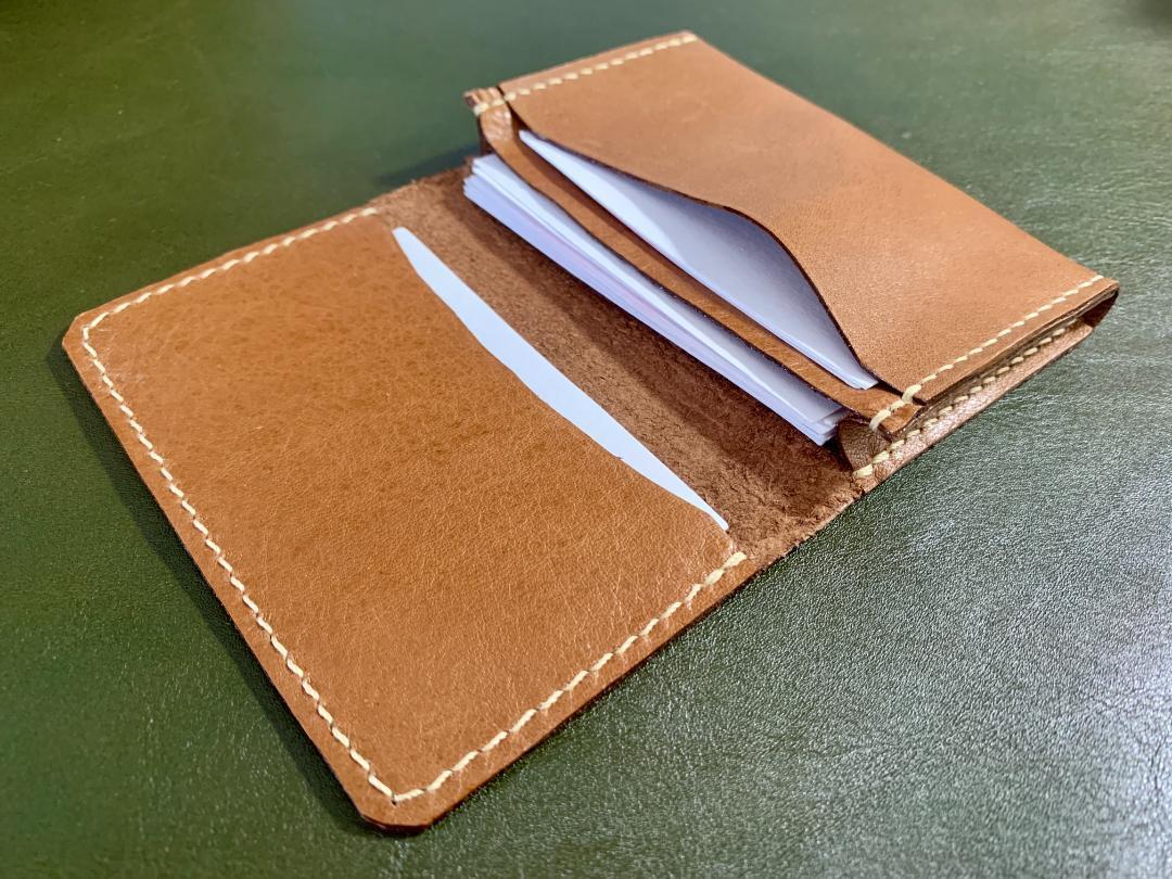 型紙の設計から手がけ、改良を重ねて仕立てた名刺入れです。