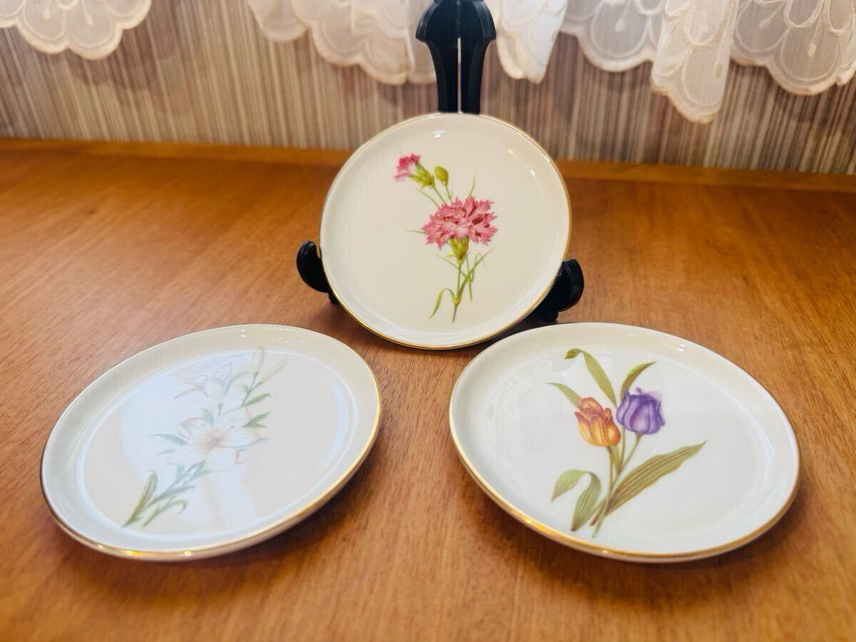 フュルステンベルグ FURSTENBERG GERMANY ドイツ製 ミニ絵皿 小皿 ミニプレート 花柄 3枚セット まとめて