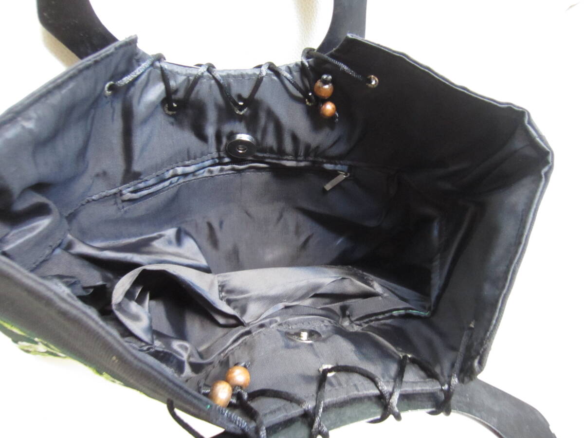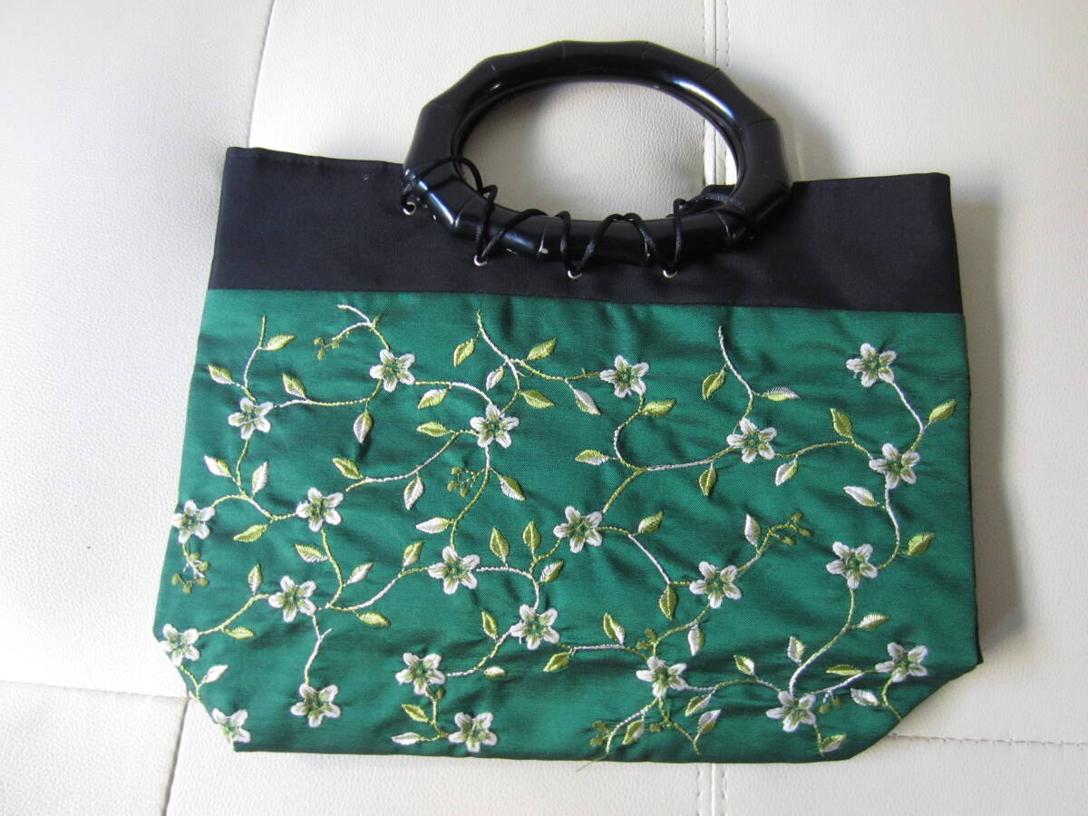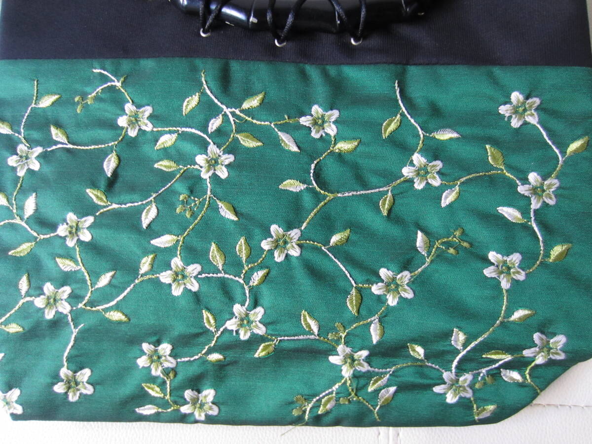 ★【送料込み】花柄刺しゅう入り 布製 アジアンバッグ (グリーン)★