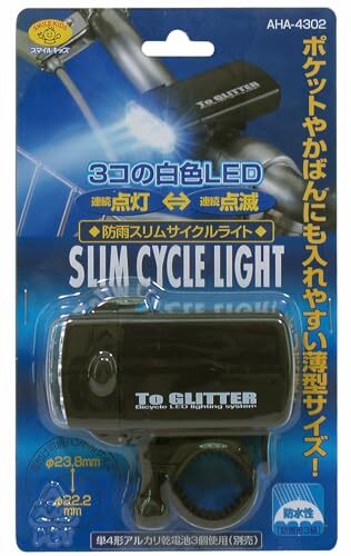 商品説明 | 商品サイズ : 約50*53*82mm(ハンドルホルダー取り付け時) 商品重量 : 約40g 材質 : 本体、ハンドホルダー/ABS樹脂 レンズ/PS樹脂 使用光源 : 高輝度白色LED×3個 使用電池 : 単4型アルカリ乾電池3個使用 乾電池寿命 : 点灯/約24時間 点滅/約48時間(国産アルカリ乾電池使用の場合) 取り付け可能ハンドルサイズ : 直径22.2~23.8mm 生産国 : 中国