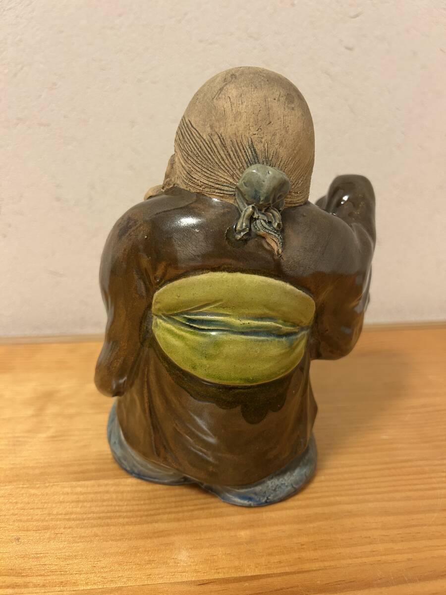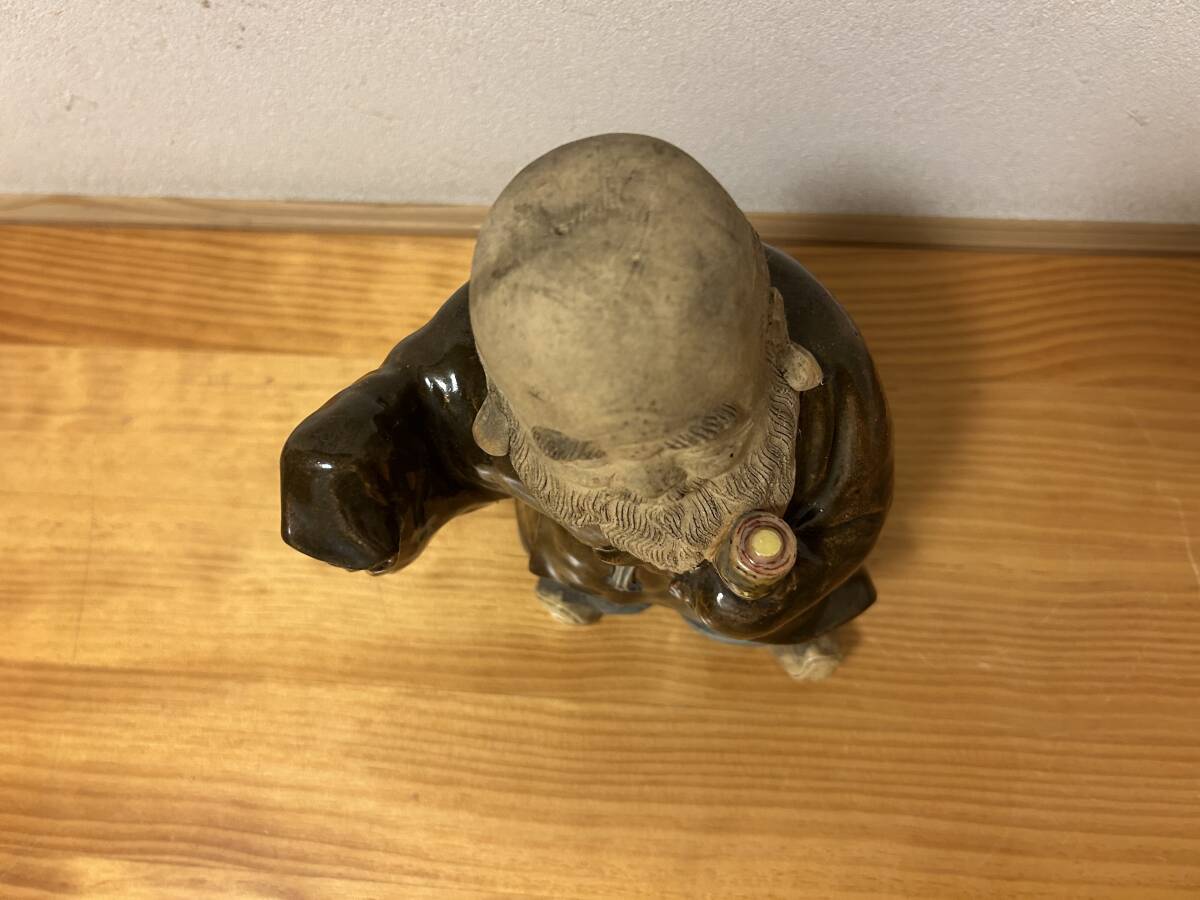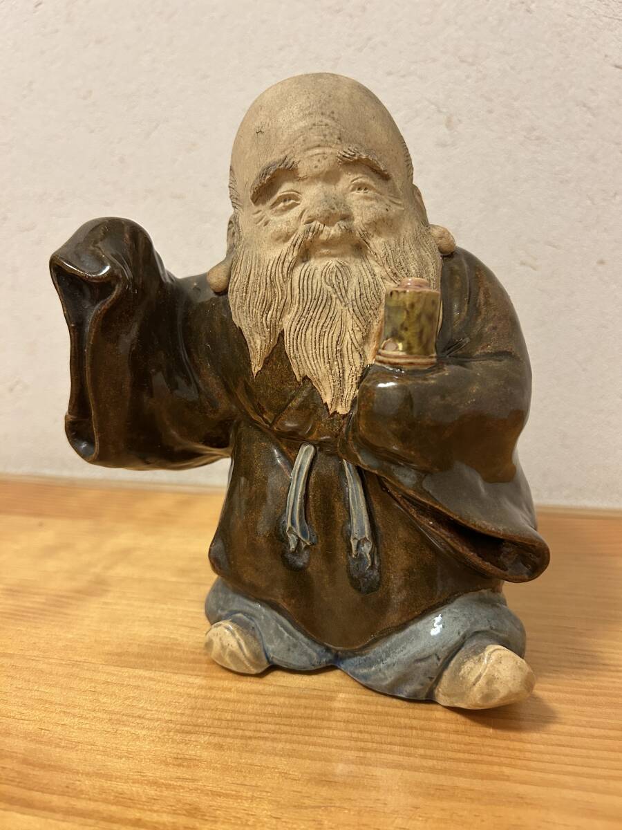 大変珍しい、仏教美術 寿老人 福禄寿 七福神 骨董品 古美術品 中古品 陶器製 底に銘あり です。 左手には巻物(人々の寿命?)を持っています。幸福・財宝・長寿の縁起物として、貴方(貴女)のコレクションアイテムに是非どうぞ。 大きさは縦18.5cm横15cm奥行9cm重さ989g位で、若干の汚れはありますが状態は概ね良好です。