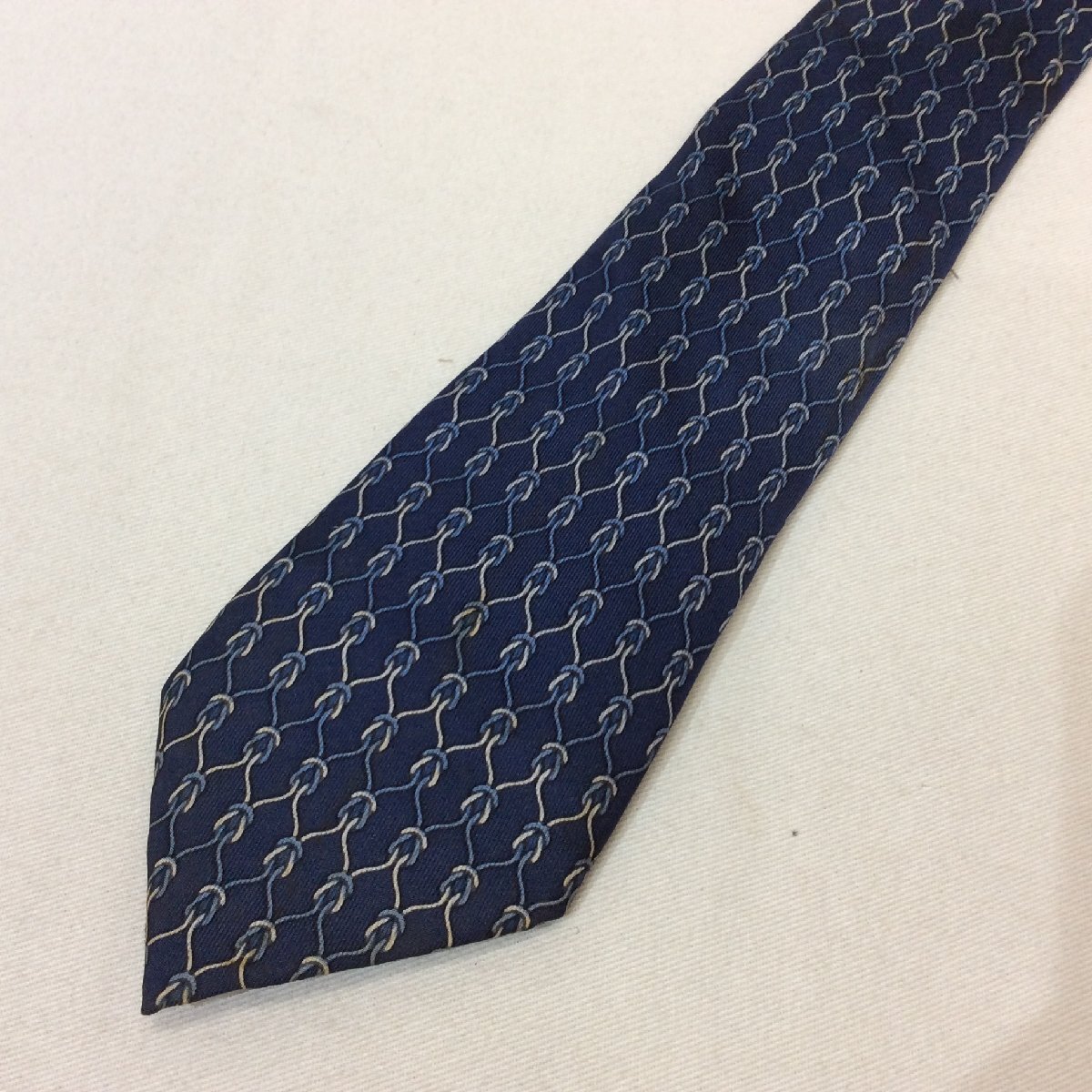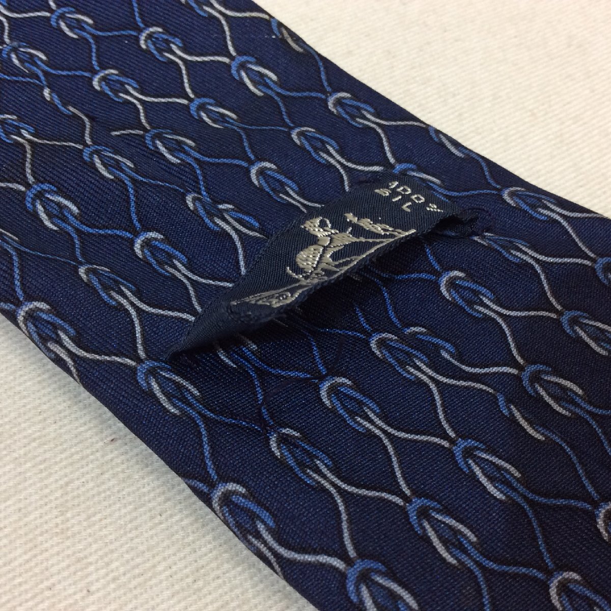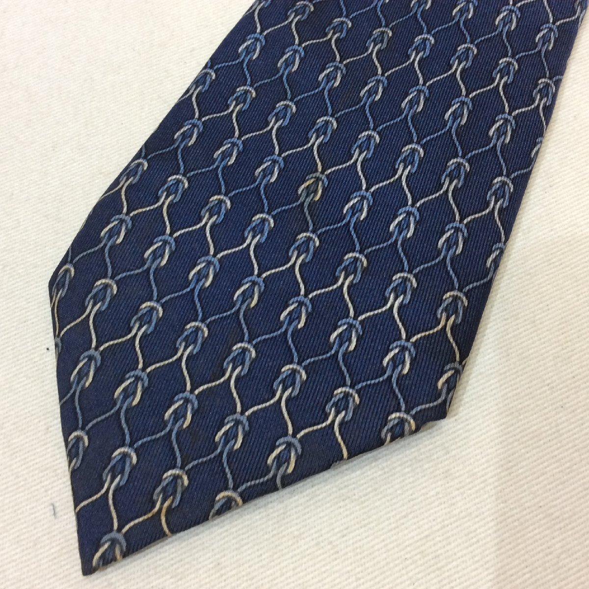 HERMES エルメス シルクネクタイ ネイビー柄 シミあり [クリックポスト可]