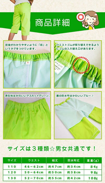 内 容 | ■男女兼用 おねしょズボン ホープ・キッズ(MJ610) ■サイズ:110cm ■カラー:マスカットグリーン ■日本製 マスカットグリーンの色がカワイイ♪ 防水布は薄いブルーの色を採用。 かわいく仕上げました! 前後がわかりやすいように「前」というタグをつけています。 ウエストゴムが取り替えできるように、 ゴムの入れ替え口があります。 ◆総額 8560円相当 |