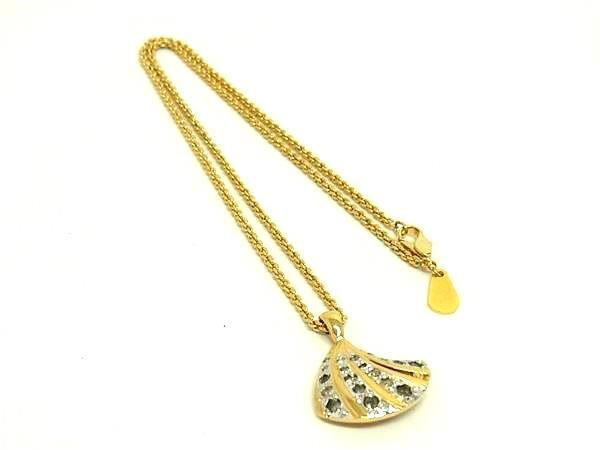 ■美品■ VALENTINO ヴァレンティノ リーフ ラインストーン ネックレス チョーカー アクセサリー レディース ゴールド系 DF4708