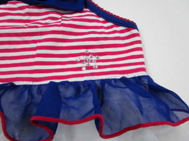 ペットパラダイス 中型犬 Mサイズ 胴回り58㎝ ティアードフリル キャミワンピース トリコロール 中古
