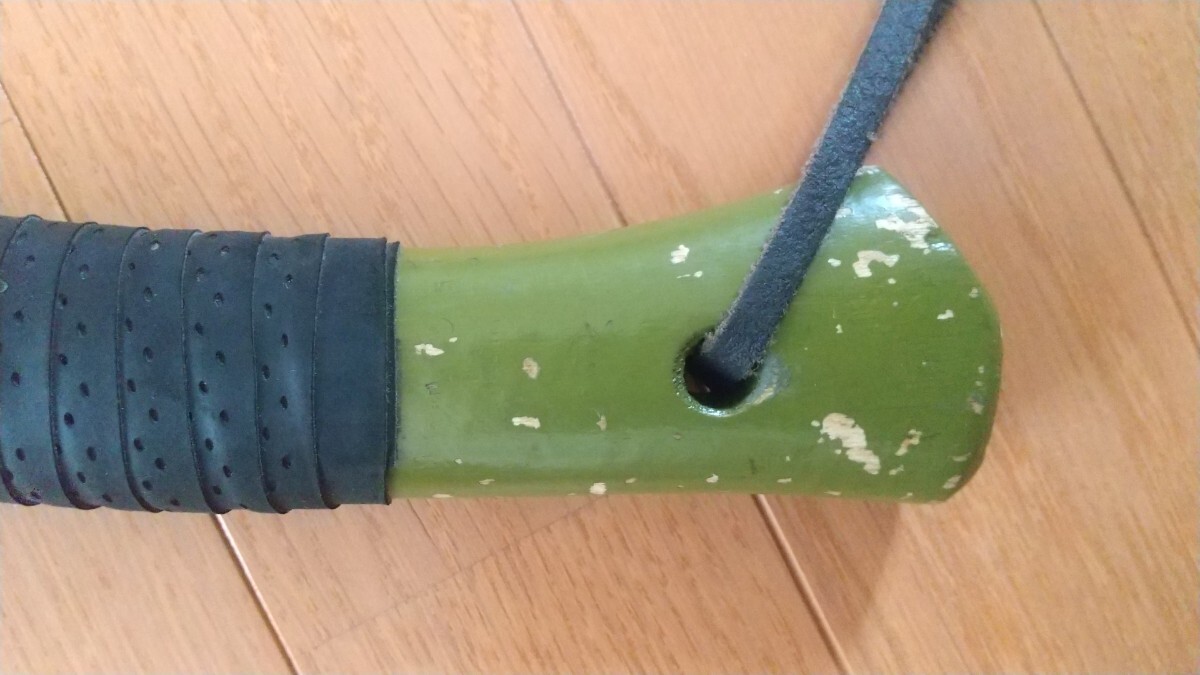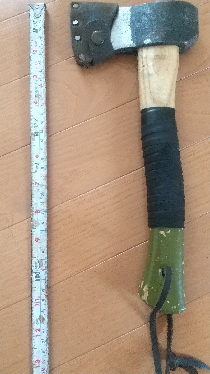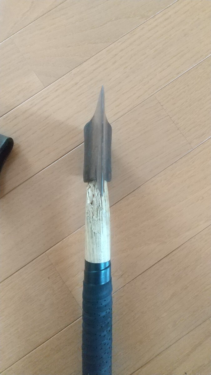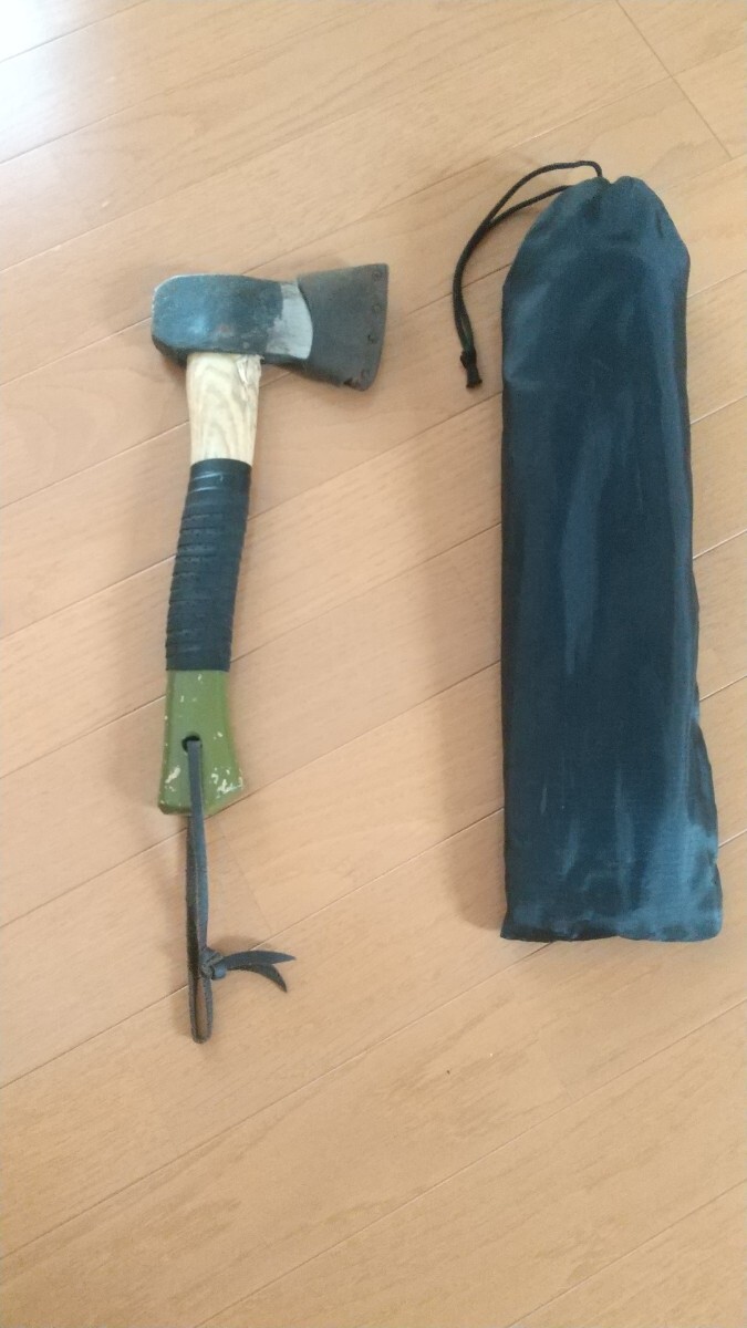 3年程前にAmazonで新品購入したプランデイの斧です。キャンプで薪割りに15回程度使用しました。柄の根元付近が薪にあたり削れています。また塗装剥がれもパッと見て分かる程度あります。テニスラケットのグリップテープを巻いて使用していたので、この状態での出品になります。
