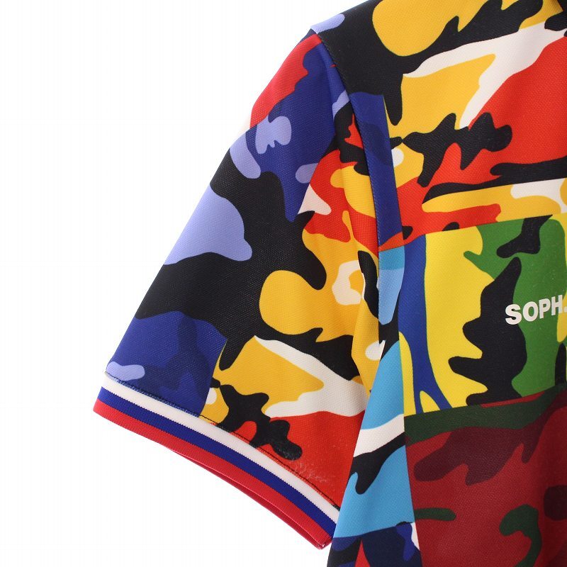 エフシーレアルブリストル CAMOUFLAGE POLO ポロシャツ 半袖 レギュラーカラー ストレッチ ハーフボタン ロゴ 総柄 S マルチカラー