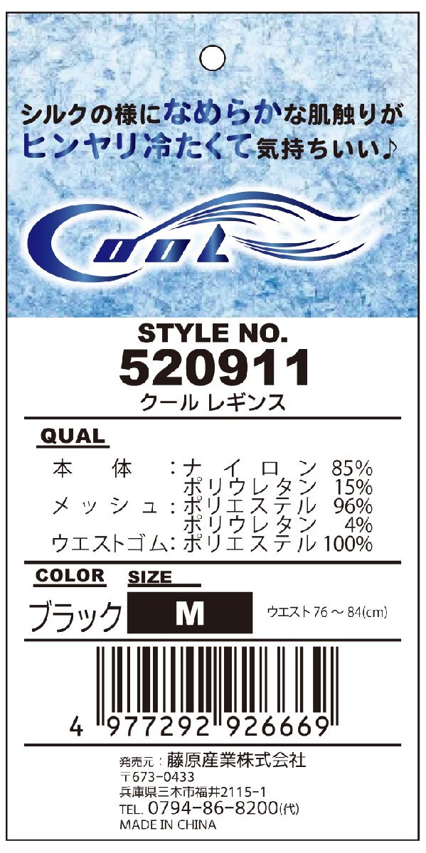 SK11 冷感インナー レギンス ブラック 黒 M 夏用 コンプレッションインナー メンズ 男性用 520911-BLK-M