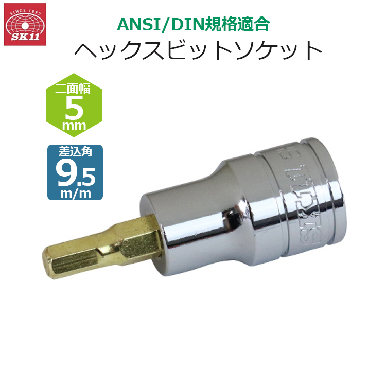 SK11 ヘックスビットソケット 差込角9.5m/m 二面幅5mm ビットソケット SH3-05