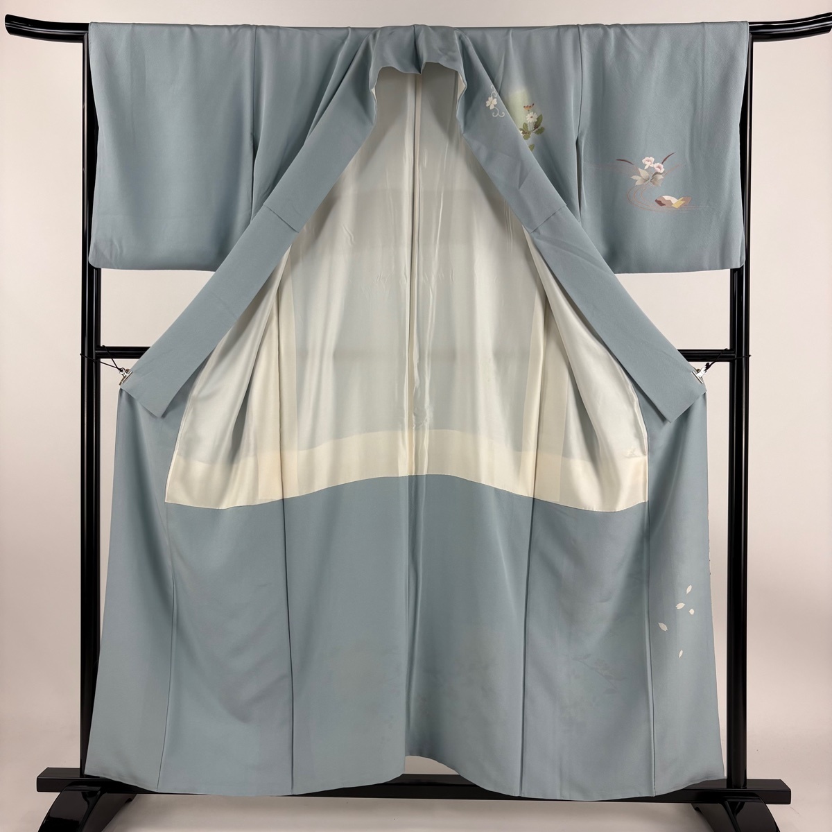 | 付下げ 秀品 草花 流水 ぼかし 水色 袷 身丈156 裄丈65 M 正絹 【中古】 |