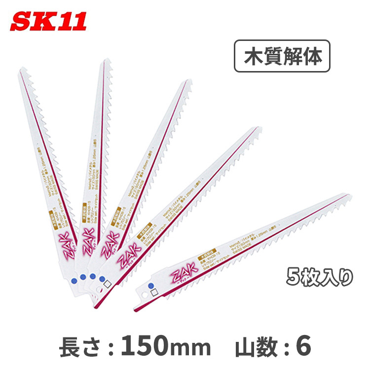 SK11 替え刃 レシプロソー 替刃 150mm 5枚入り 山数6 ZAKレシプロソー木質解体 KH09-15/5 工具 パーツ 部品