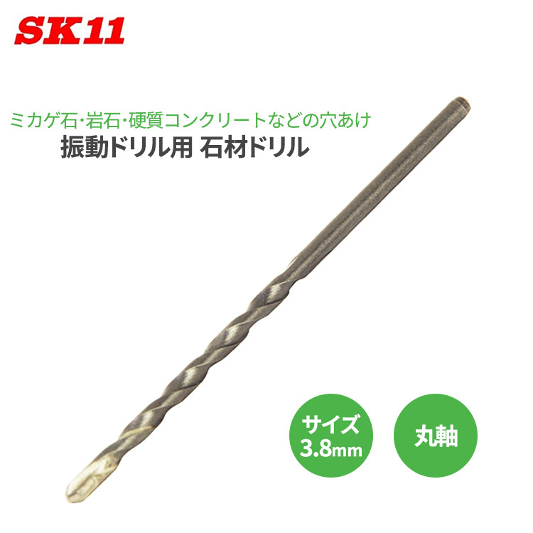 SK11 石材ドリル 3.8mm 丸軸 振動ドリル用 穴あけ 硬質コンクリート 石材 ミカゲ石 硬質瓦 PC板 ドリル