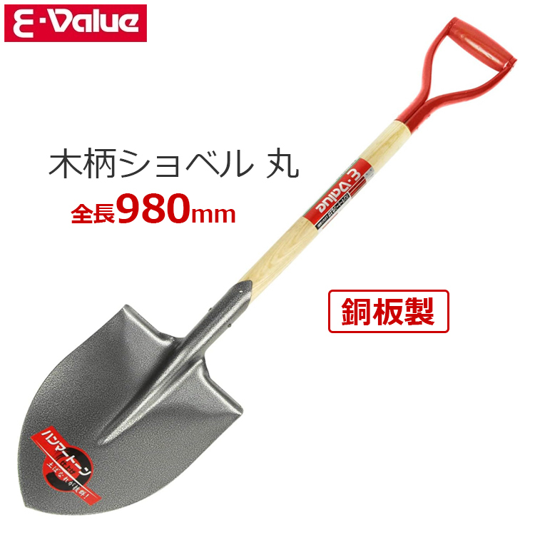 E-Value ショベル シャベル 丸型 全長98cm スコップ 木柄 丸ショベル 刃研無 EWS-5