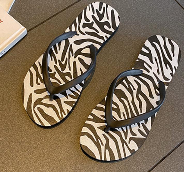 レディース ビーチサンダル  夏 滑り止め フラット ソフト ゼブラ柄 スリッパ
