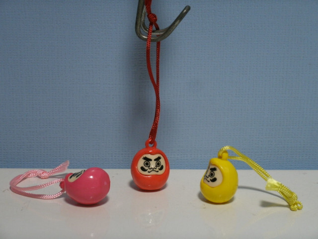 商品説明 | ★入札前に自己紹介欄をご一読ください。 2000年頃の品です。いずれもストラップとして使用したことはありません。 全長約8cm、だるまの部分約2cm、プラ製。形はだるまですが、倒れても起き上がってはこないです。 袋に入れて保管していましたので、目に見えるキズや汚れはなく綺麗です。 |