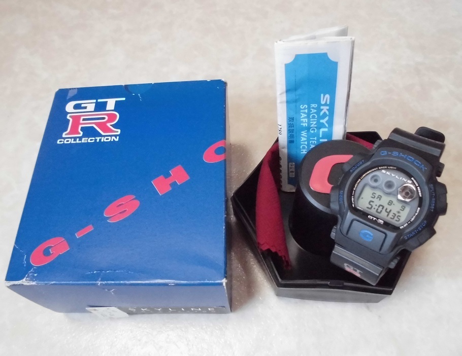 スカイライン GT-R限定のGショックです!ライトを点灯させるとR34のGT-Rが浮かび上がります!数あるGT-R限定モデル中でも、ここまで細部にこだわったバックライトのシルエットは、ほかにありません!実車はかなり高騰していて今では手に入りにくい車になっています! 未使用品。写真の時計と使用説明書、オリジナルのボックスの出品です。写真撮影時はライトが点灯し動作中です。未使用ですが、写真撮影時や保管の際についたスレなどがあります。ビンテージGショックあるあるですが、工場出荷時についたと思われるうすいキズが裏蓋にあります。付属品には、折れやキレなどイタミがありますのでおまけです。生産終了限定モデル。 |